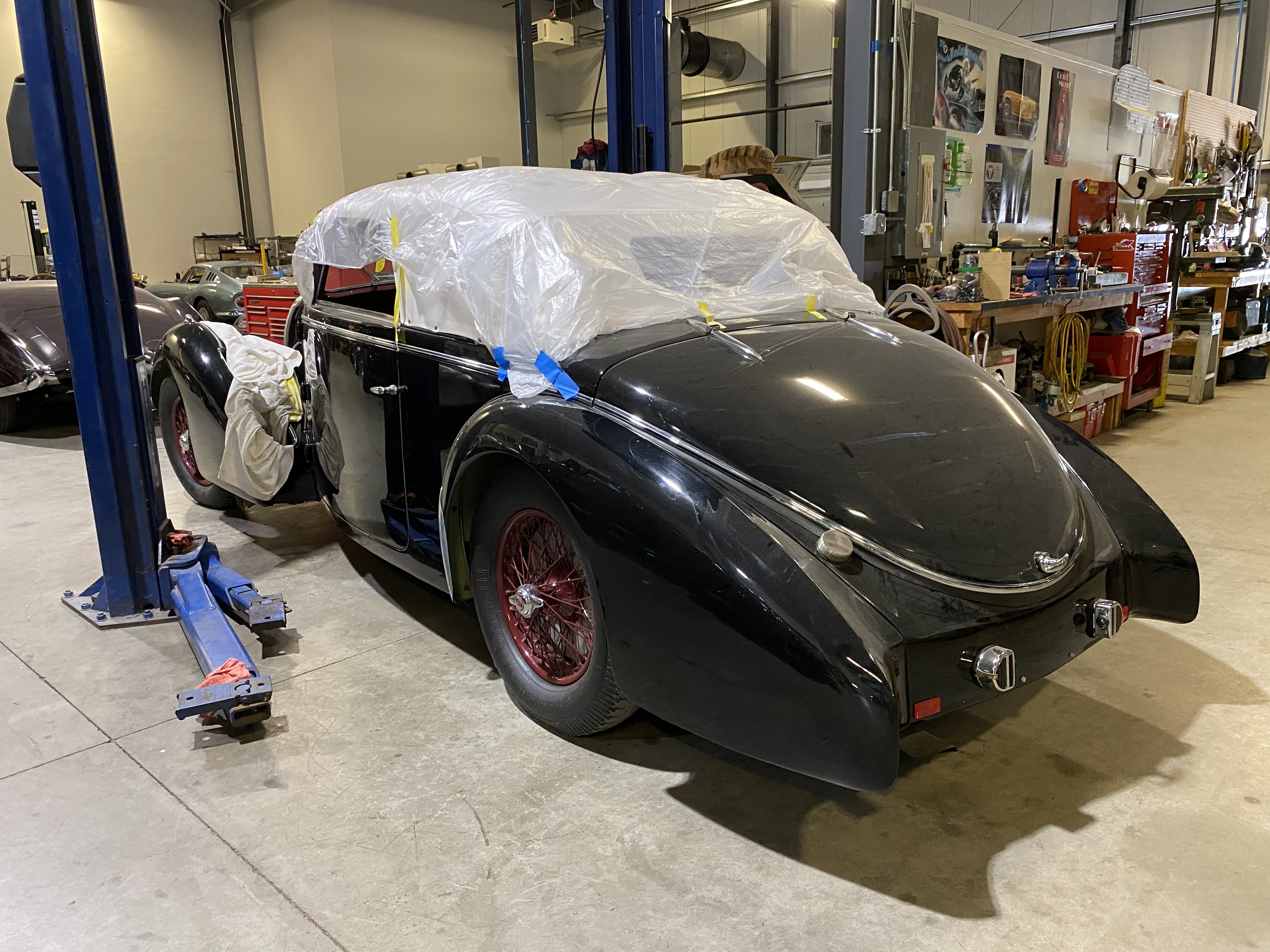 Other oddities in the shop are a Jaguar XK120 drophead, a Superpreformance Shelby replica, a Lotus Europa, and a Hudson Wasp. The latter is getting a full resto-mod treatment with an LS crate engine, air conditioning, new struts, breaks, and more.