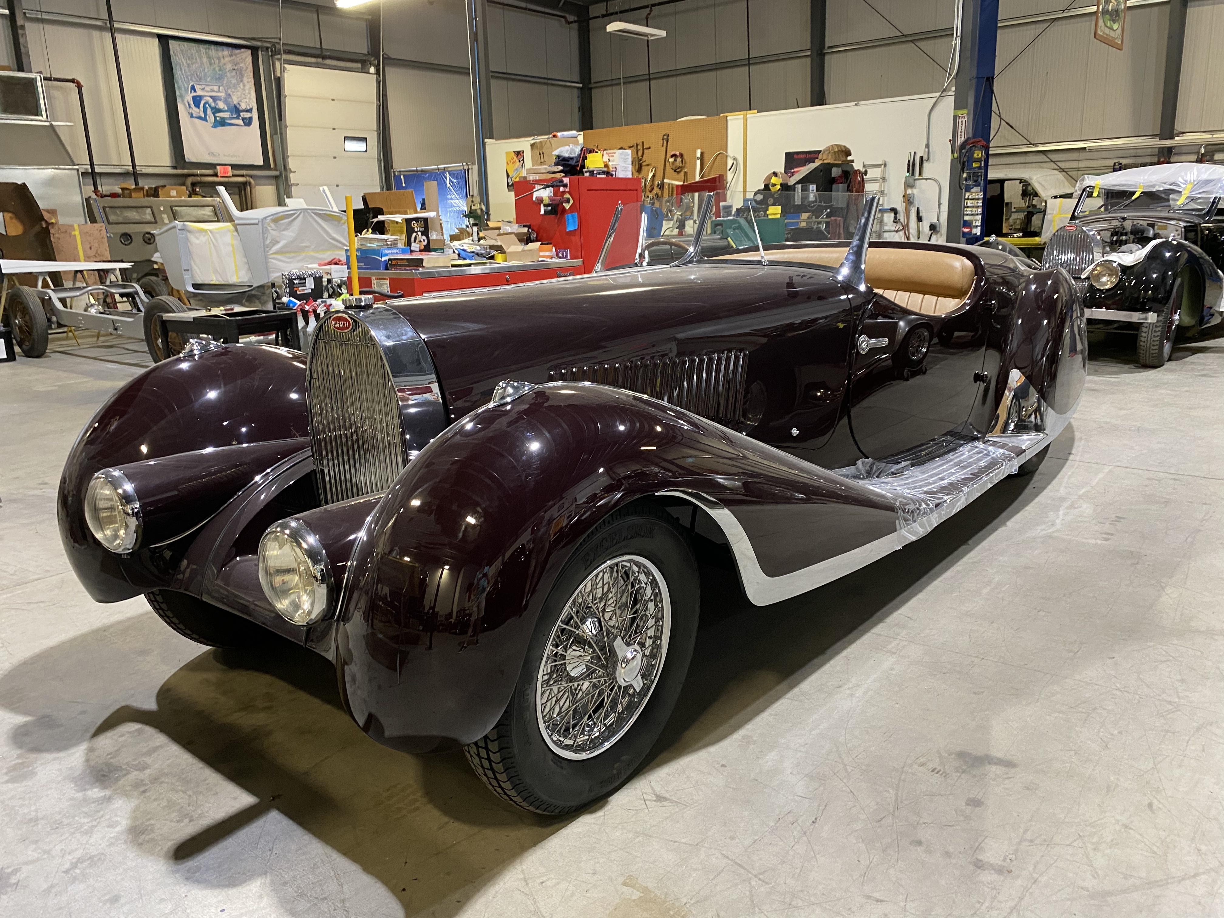 So, the cars. As I stated earlier, Sargent Metal Works primarily focuses on pre-war Bugattis, so naturally, there are a few of them. Let’s go on a tour. Out of the roughly 20 cars in the shop, there were at least 15 Bugattis spanning from gran-Prix-winning race cars, to sleek coach-built cruisers. What isn’t pictured is the astronomical amount of rear wings, new camshafts, and engine blocks all used to supply these cars. Aside from the parts easily available to buy overseas, Scott and his team utilize independent metal shops across the US to 3D print and create new engine parts such as the engine block itself.