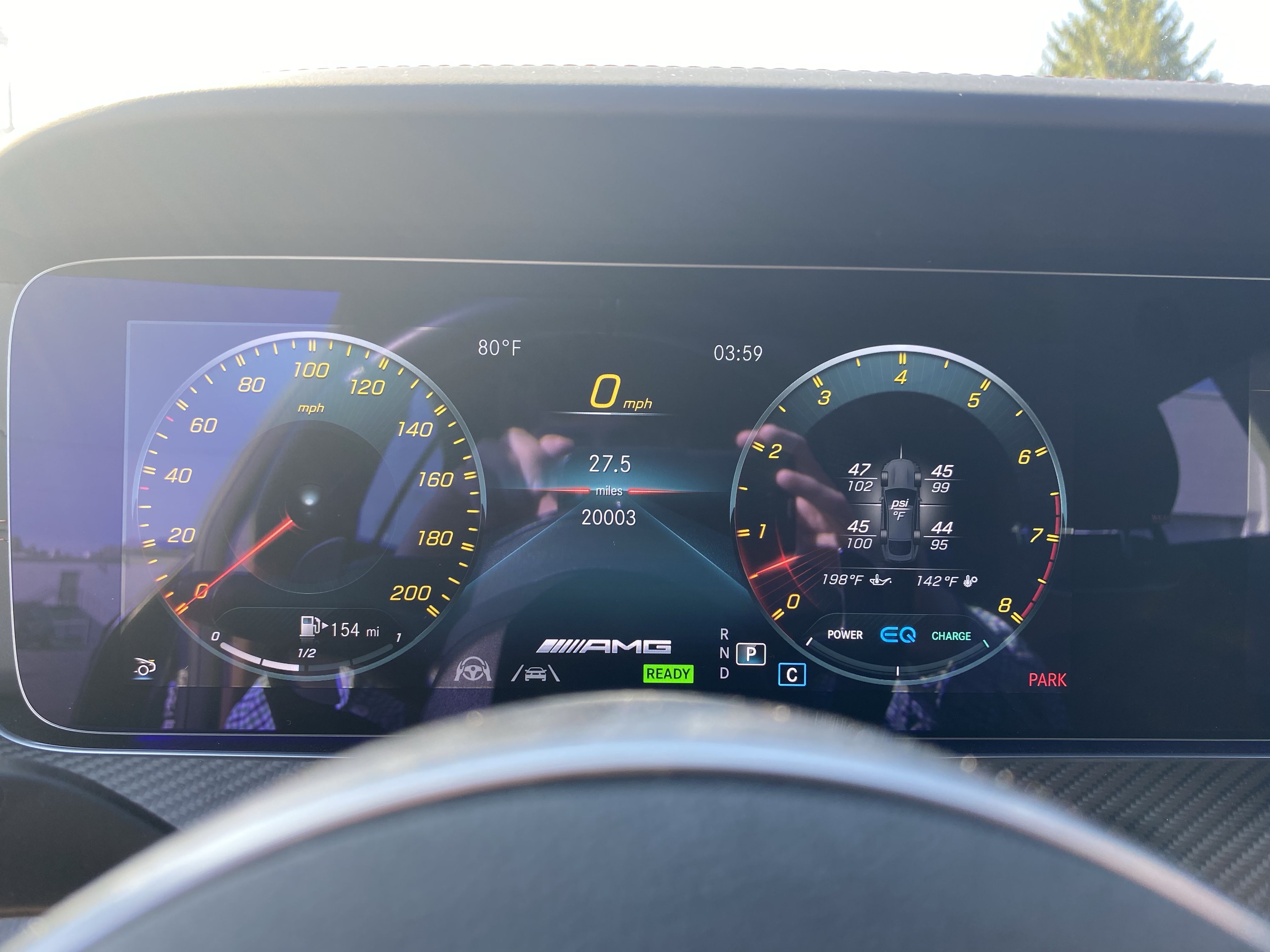 This car drives hard. Of course, it does, it is an AMG. Thankfully, the seats are comfortable enough that the hard ride doesn’t mess you up too much. The active-aero spoiler helps you turn in quicker while providing some form of downforce that is too mathematical for me to understand. This is a very tech-heavy car if you couldn’t tell. Also worth noting is that there is a small EQ regenerative breaking diagram that tells you how much of the battery you’re saving by regeneration breaking, which is cool. While that battery does help with engine management, it doesn’t really help you with MPG. The GT 53 gets 19 city, 25 highway. That isn’t atrocious but cars like the Audi S7 get way better highway mileage. So, what is the price you pay for this sea of leather and raw power? $102,000. It is more expensive than its rivals, but I can tell you without having to drive them, that this will be the more comfortable car to live with.