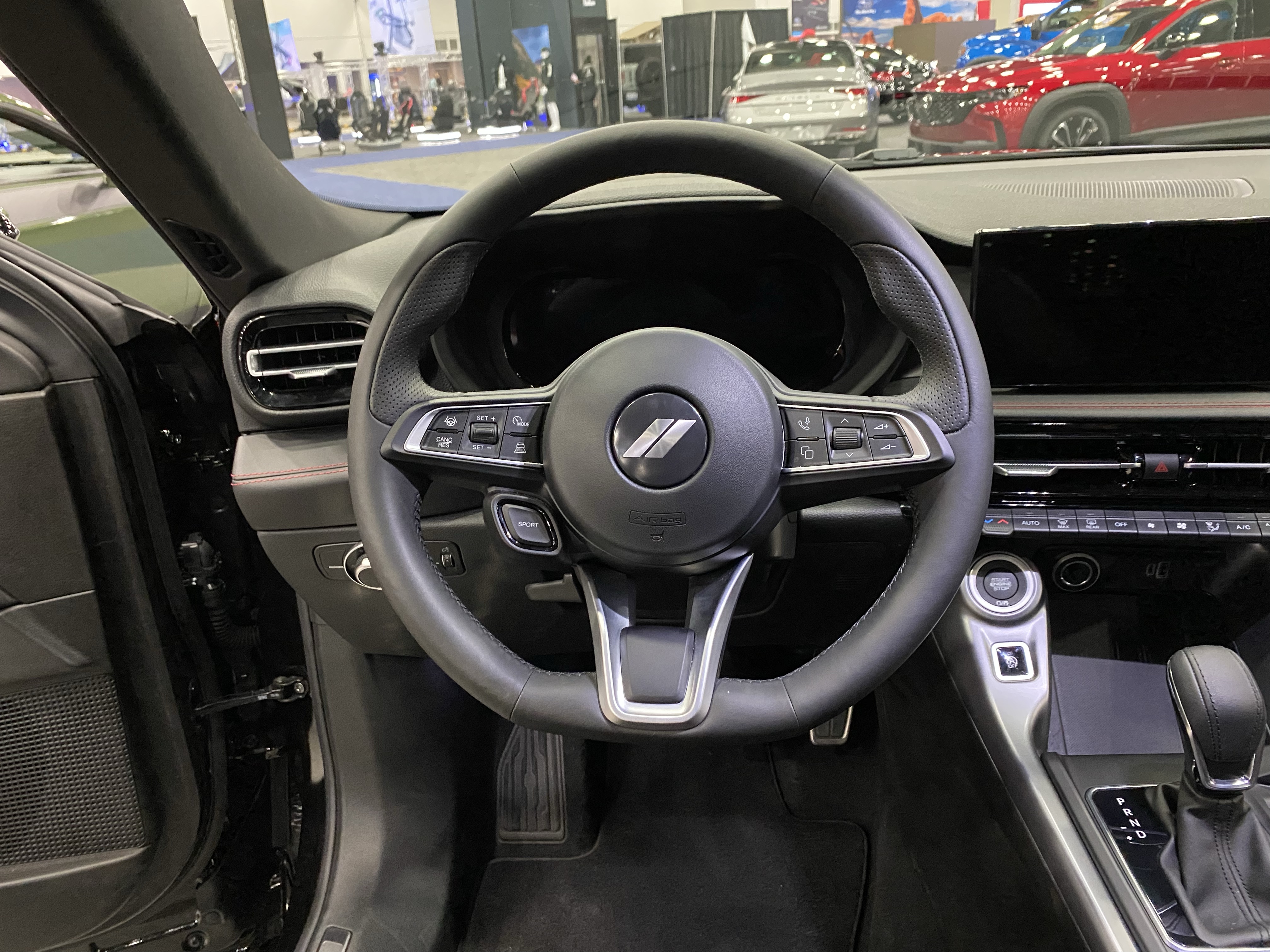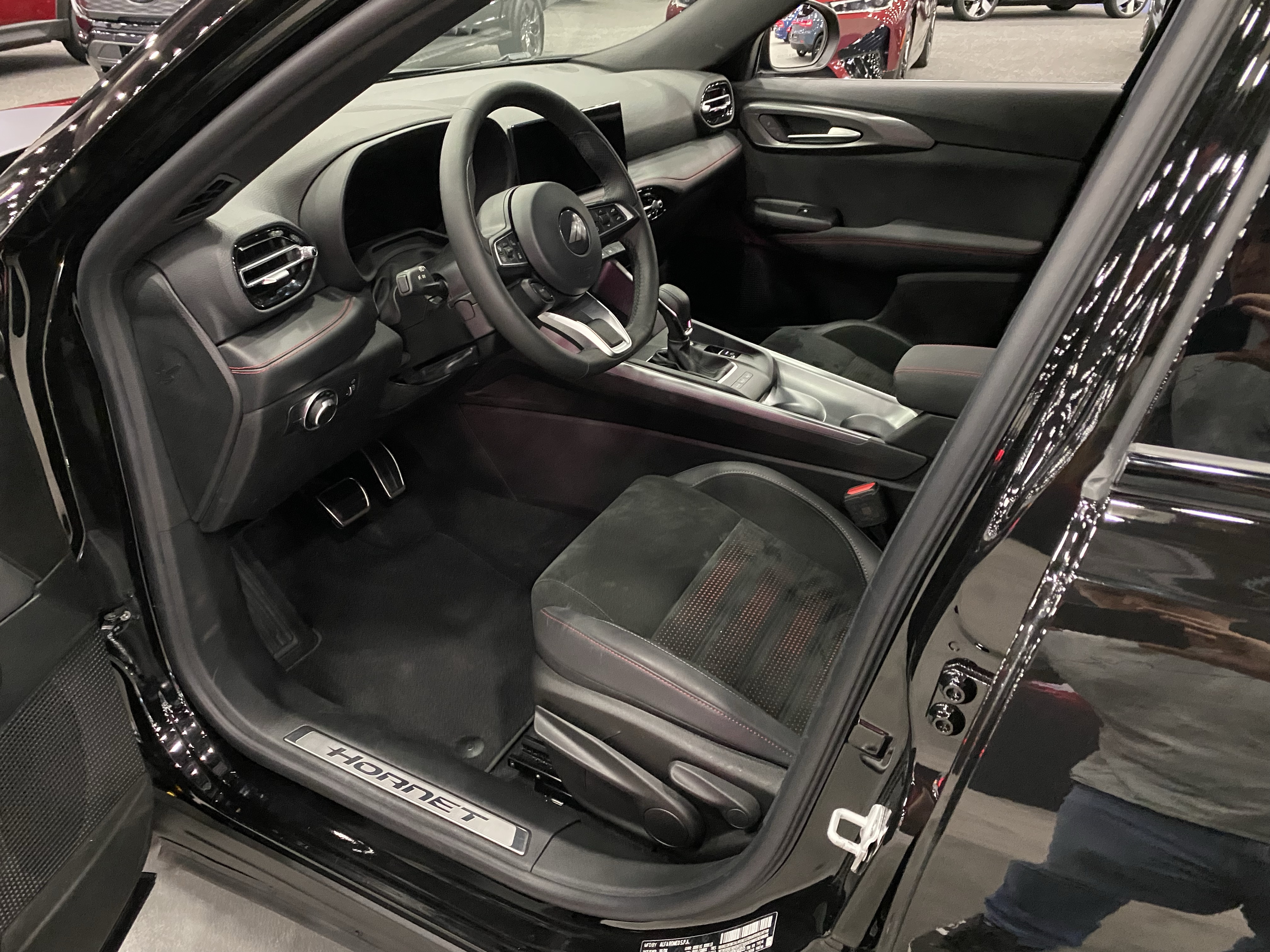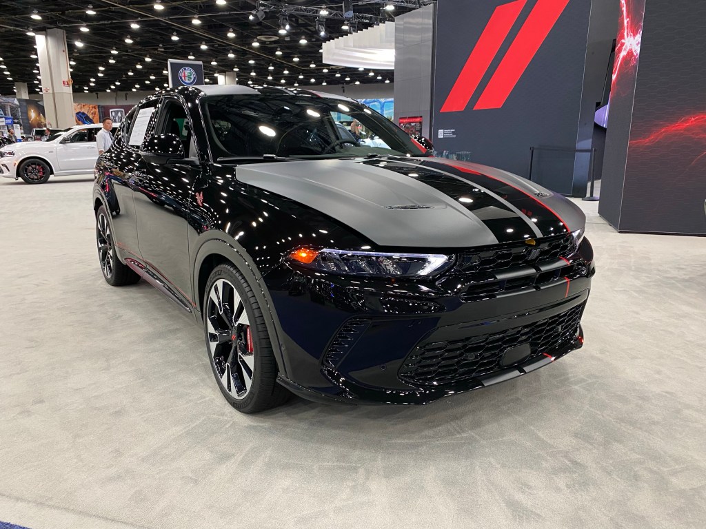 The Hornet shares a similar shape and body language with its sister car, the Tonale. I find the Tonale to be an attractive car and I think no differently of this. It is a small, cutesy little CUV with some Dodge aggression pieces thrown onto it out of necessity. There were two Tonale GTs at the show. One was blue and the other was black with a red stripe, so naturally I chose the more exciting-looking one to take pictures of. I’ll be honest: in this color scheme, the Hornet looks cool as hell. One strange thing, though: on the trunk it had this strange vinyl sticker that said “direct connection.” I don’t know what that means or why it is there, but I’m sure it serves some purpose. Cute bee, by the way.