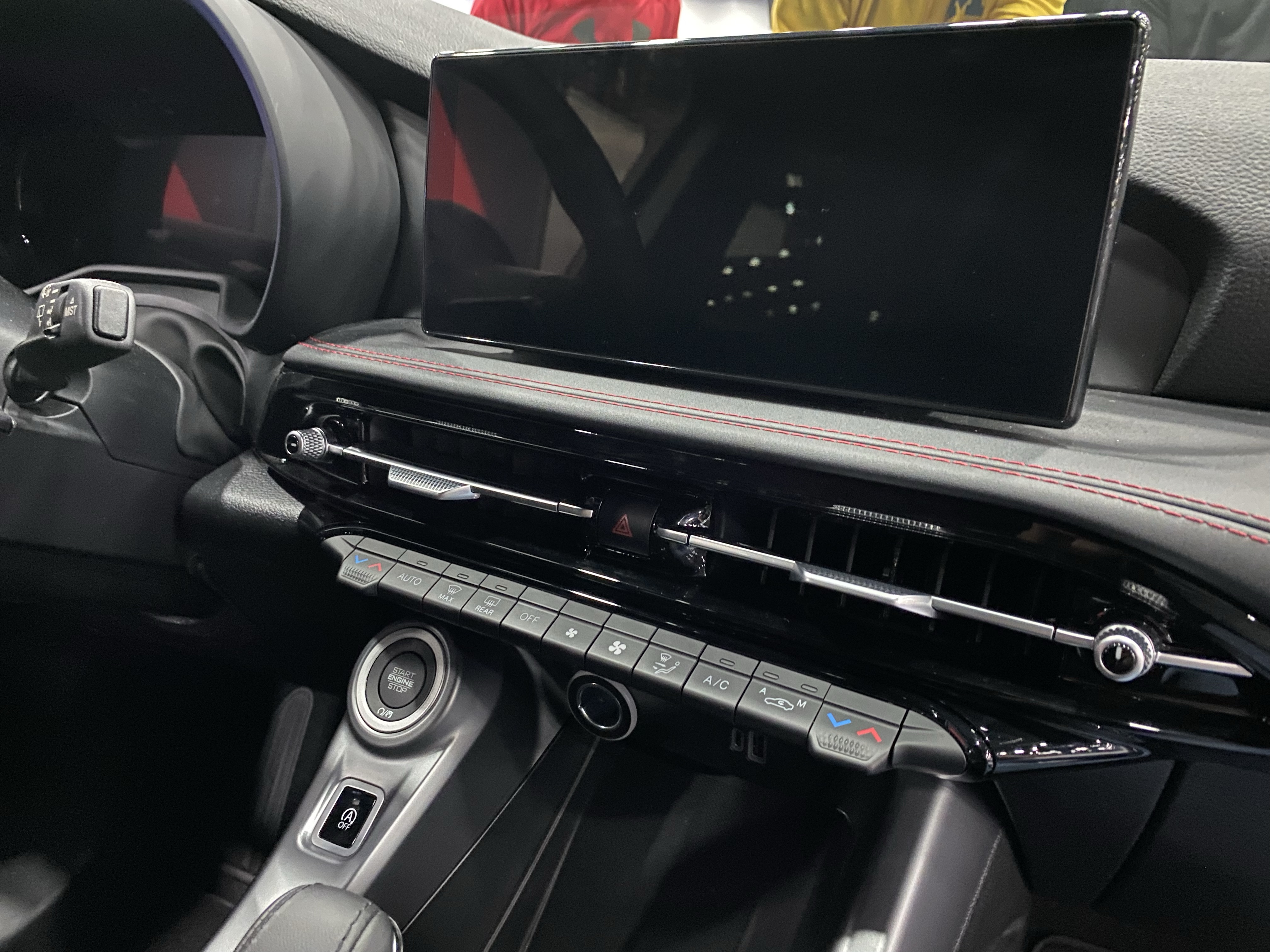 Like the exterior, the interior looks marginally the same as the Tonale albeit with some slightly cheaper materials. Most of the leather has been replaced with soft-touch plastic, which for Dodge is absolutely fantastic. The seats are a cool suede/Alcantara material with a fun black and red color scheme, with some more red stitching on the upper dash near the screen. Material-wise, the car feels pretty solid and there wasn’t anything too abhorrent I came across. Stuff like the air vents, steering wheel, and center console all come straight out of an Alfa Romeo, so take that as you will. I think they look fine and feel fine, but I know some Dodge purists won’t like any Italian flare in their burgers, so I assume that may be a point of conflict for some buyers.