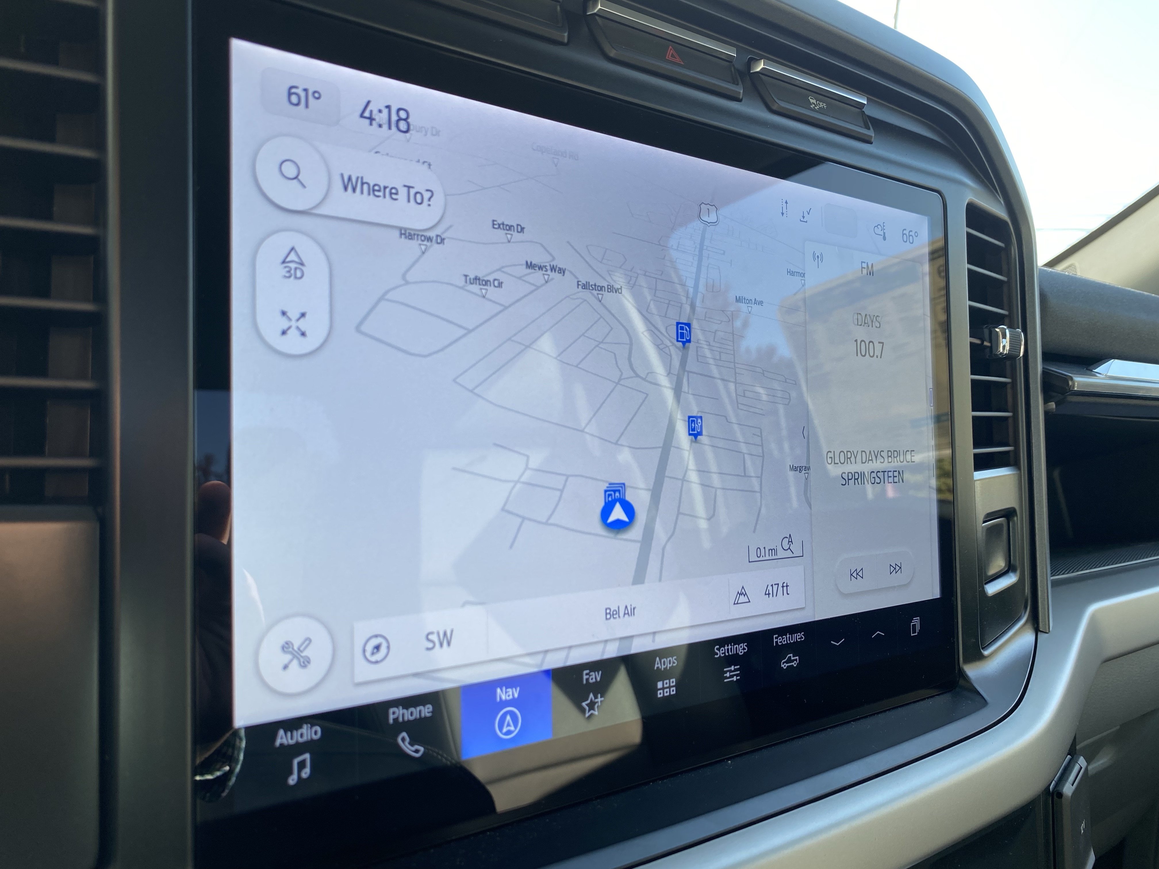 Again, this is a truck, not a car. The interior of the Pro is nearly identical to that of a base F-150. The design, materials, layout, buttons, seats, all of it is the same. The only large difference I could find between this and a gasoline F-150 is the inclusion of a fully digital driver’s display screen being offered as standard. Because this is just a base F-150, you won’t find hides of high-quality leather or brushed metals. However, the plastics offered aren’t too egregious, and Ford has done a good job making its interiors look and feel nicer than other trucks in its class. One of my favorite parts of the interior is the storage space on the passenger side of the dashboard. Press a button located underneath an air vent, and bam: extra glove box. Other neat interior features include the now iconic “shifter collapse button,” which for those of you who don’t know, is a button located next to the shifter that folds it down flush with the center console. This is now standard across the F-150 range and works well with the optional workspace package that this Pro, unfortunately, didn’t have. The only main drawback I see from this cabin is that there aren’t electric seats, which, again, I know it’s a work truck, but at the price point should at least be noted.
