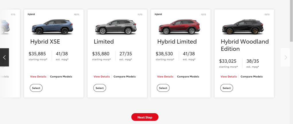 Four out of the 13 trims for the RAV4 seen here