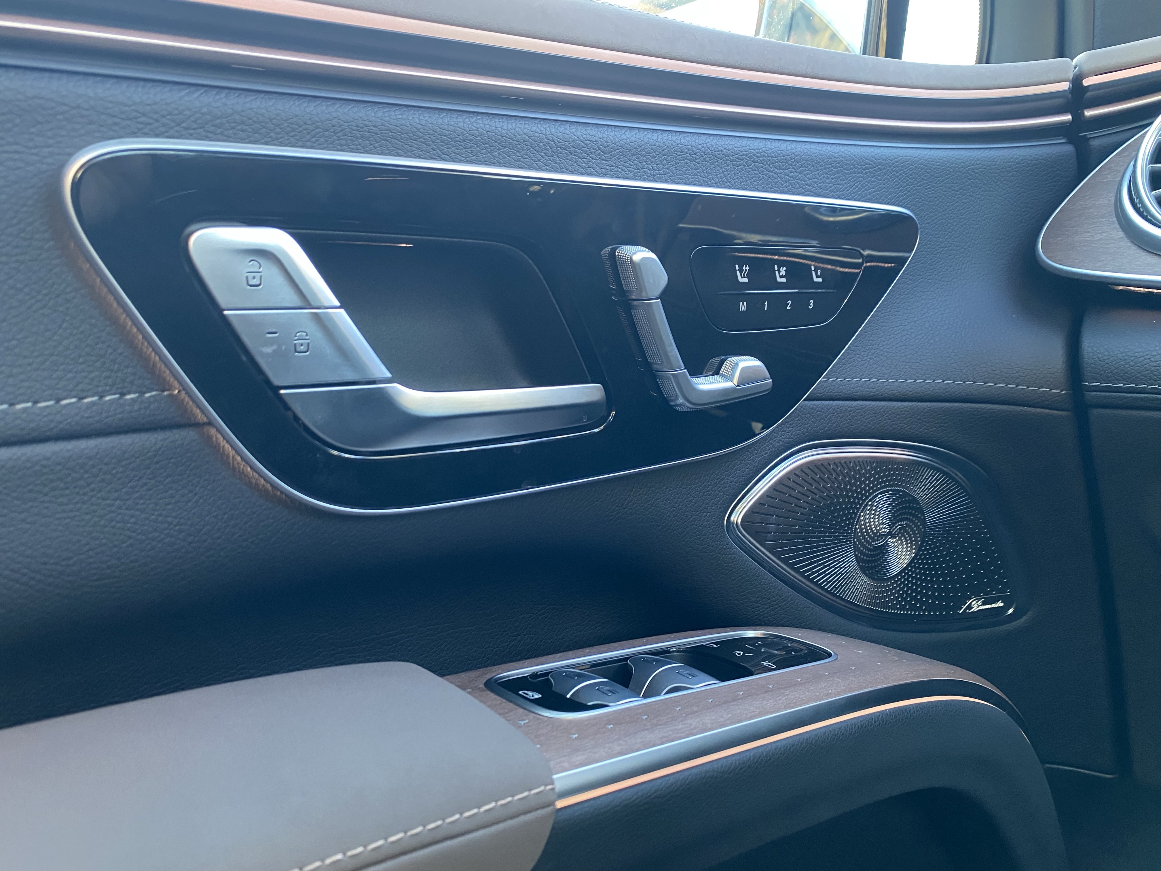 The moment you climb into the EQS SUV you realize why this car costs $124,000. Every surface is covered in premium materials that put anything from BMW and Audi to shame. The grey and brown leather was sumptuous, and the Mercedes logo’d wood finish provided some extra boujee-ness to the cabin. Each seat (front and back) comes with a pillow headrest that is adjustable and removable if you so desire. My mom told me driving with a ponytail might be difficult. Speaking of those rear seats, there is plenty of room for you to manspread and you’ll be comfortable enough to lay back on any journey in which you’ve decided to tag along. Back to the front of the cabin, you have plenty of storage space for all your expensive things. There’s some center console room for your Kleenex, and a Volvo-style center console storage bin with a strap so your Don Julio won’t roll around.
