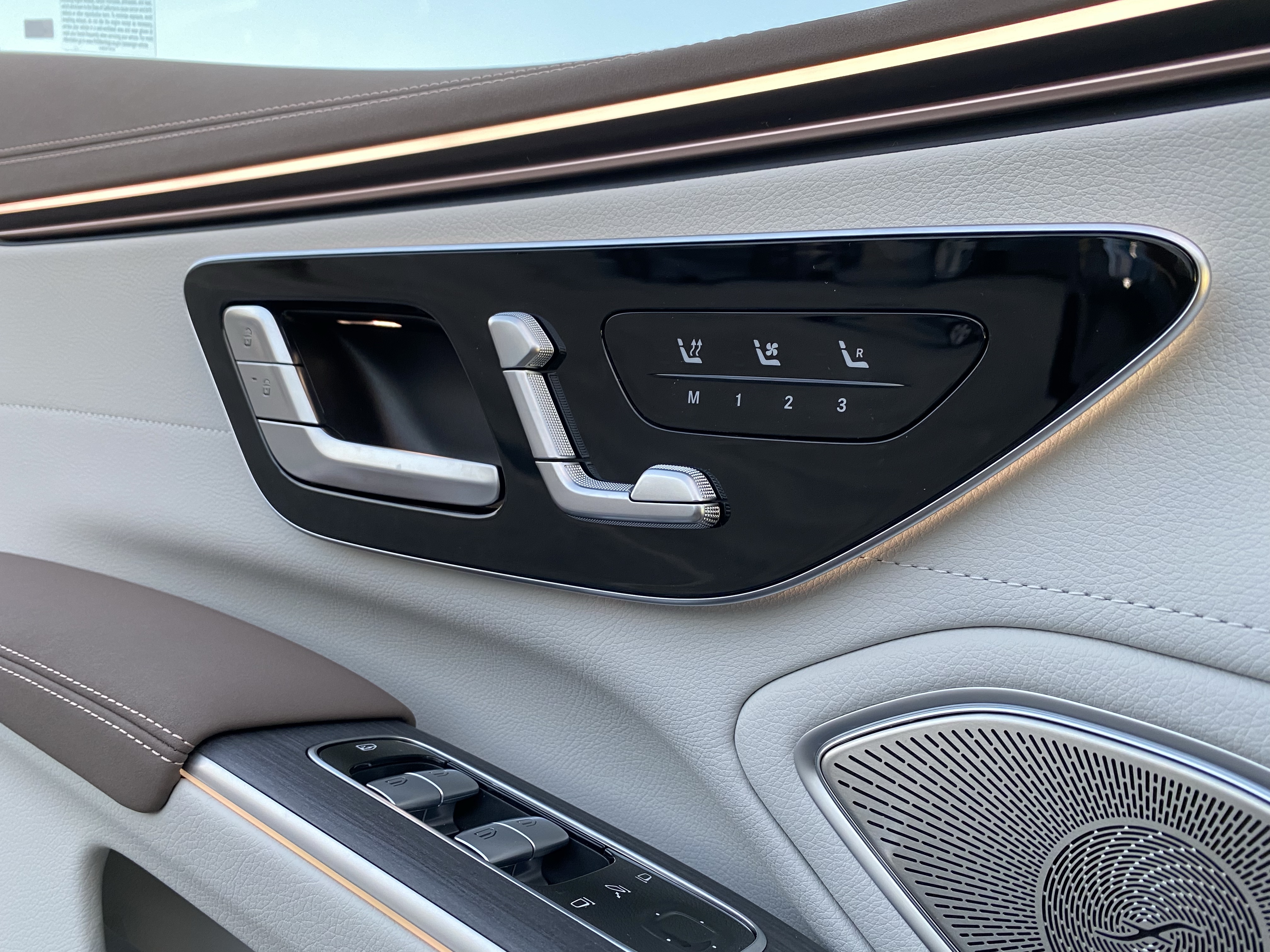 We will get to the hyperscreen in a bit, I promise. Like the EQS SUV from a couple of weeks ago, the interior quality of these EQS cars is pretty unmatched. Every solid surface is covered in smooth leather, pretty wood, or some combination of both. The controls feel weighted and solid, and the general look of the interior is pretty good as well. However, the rear seats are where the EQS starts to lose some points. For starters, the EQS is several inches shorter than a regular S-Class, and while guys might tell you that “size doesn’t matter,” back here it does. Compared to a regular S-Class the legroom is not what it should be. Don’t get me wrong, there is plenty of it, but you just don’t get that same stretching ability. Another mark against the EQS comes from a lack of a four-seater option. In most big luxury cars, you can pay a little extra to have the rear middle seat taken out and replaced with a slab of wood and leather and screens and buttons. In this car, you can’t have that. Granted, there is an optional rear-seat control panel that will do most of what a full seat replacement can do, but for a car touted as being an electric S-Class, it feels like this car has some wasted potential in the rear seat department.