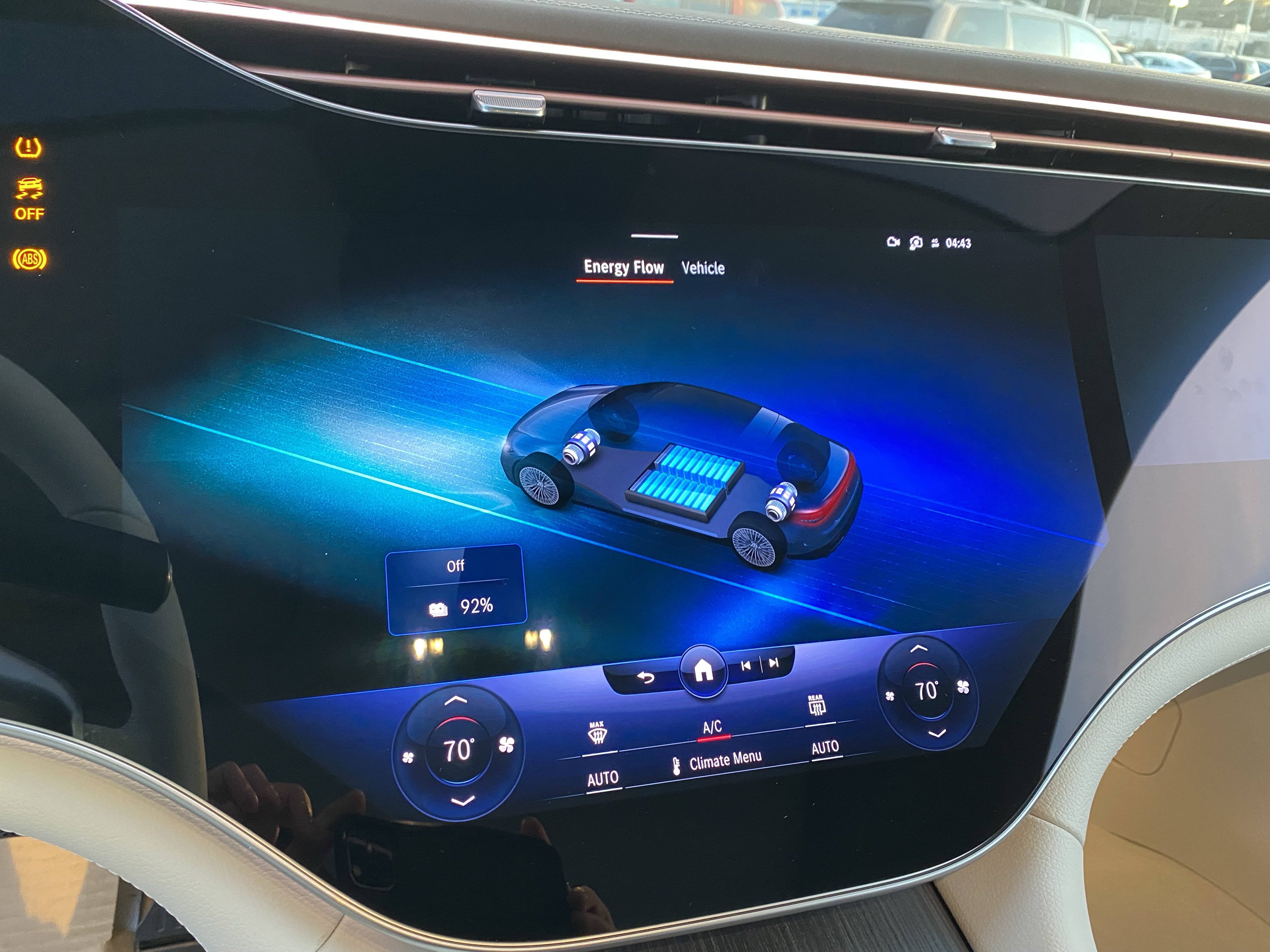 The Mercedes EQS 580 comes with a 107kwh battery that produces 516hp and 631lb-ft of torque that sends its power to an all-wheel-drive system. This results in a 0-60 time of 3.5 seconds in a car that weighs over 5,800lbs. Yes, that isn’t Lucid Sapphire or Model S Plaid numbers, but a lot of people don’t realize how quick 3.5 seconds actually is until you do it. To accompany you to your 60mph journey is the option of different noises to play throughout the cabin. One of which being called “Vivid Flux.” It sounds like an old Jetsons car in real life and I promise you, you will never get bored of it. Along with the noise, the interior lights also move accordingly with the sound. It is very cool and made me giggle loudly.