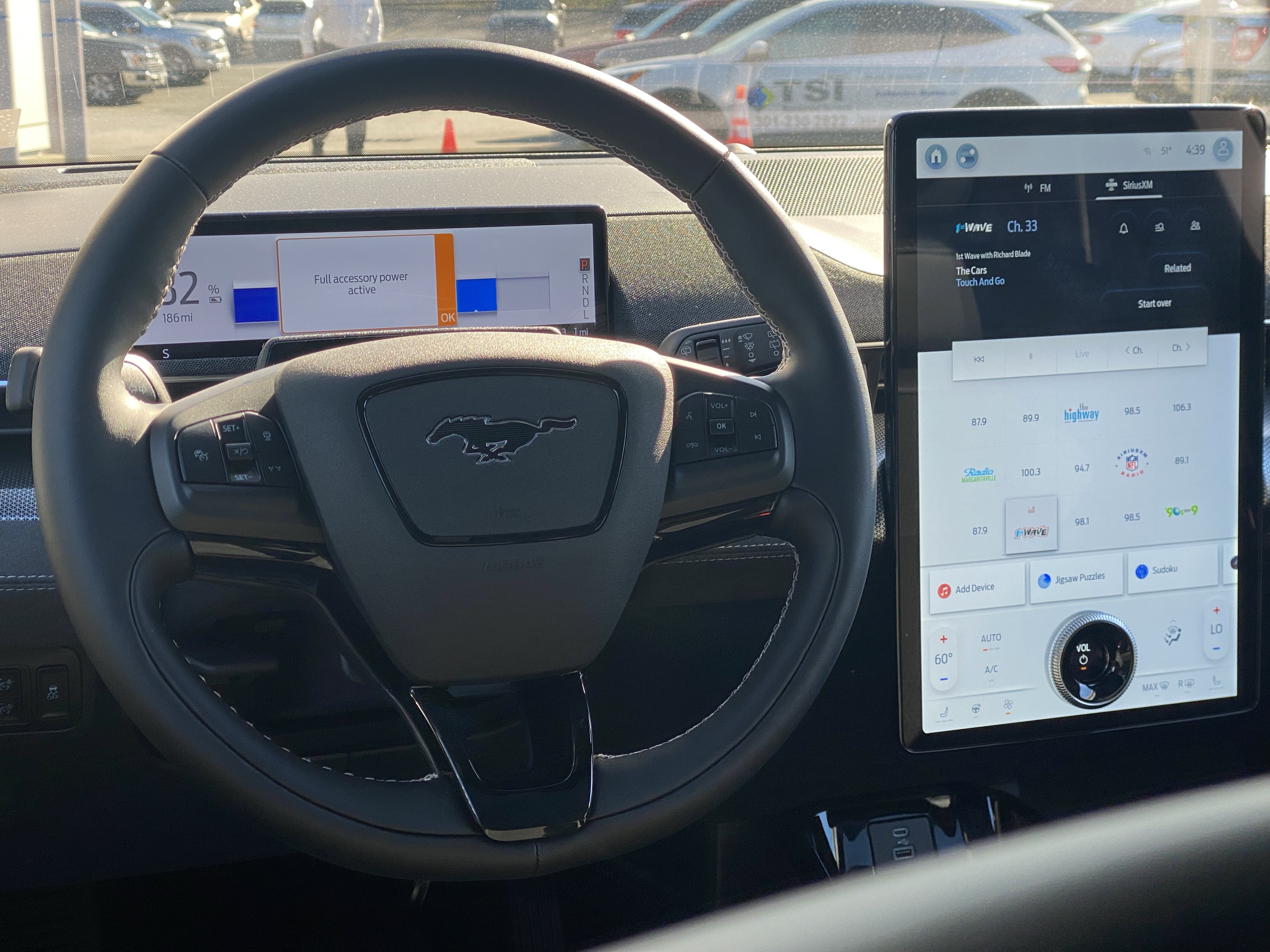 As for equipment, the Mach-E has about everything you’d expect to be competitive in this space. You get heated front seats, a heated steering wheel, USB-A/C ports, wireless charging, a B&O sound system, adaptive cruise control, Bluetooth, CarPlay, Android Auto, a handsfree system, available Blue Cruise partially autonomous driving, a blind spot monitoring system, lane-keep assist, forward collision warning, a 360-degree camera, and best of all, the optional Performance Pack.