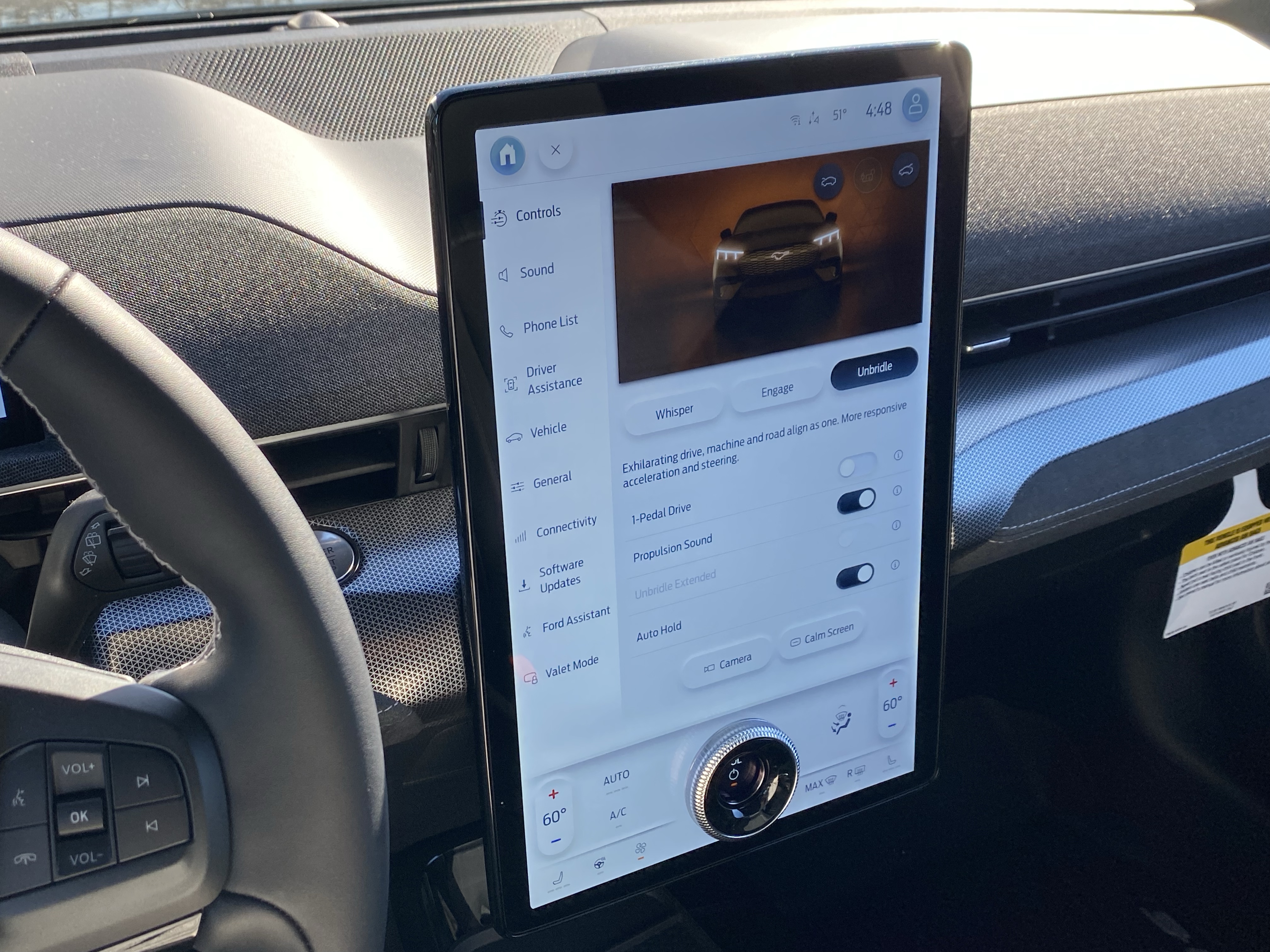 The Mach-E comes with Ford’s signature vertical Sync system which, like this car’s name, has had mixed reactions from consumers. Some claim that its portrait style is easier to use as it mimics your phone display and doesn’t have you reach as far to find functions. Others say that it looks weird and the functionality is neigh. I think that compared to something like the Explorer, this screen works better as it is much larger, and therefore I don’t think it’s all that bad. The recent over-the-air update to make this center scroll wheel work as volume controls help this screen tremendously. And while I foolishly forgot to snag a picture of the backup camera, the layout doesn’t make it laughably small. Otherwise, Ford’s Sync system is not super difficult to use, and everything is there for you where you need it without having to endlessly scroll through menus.