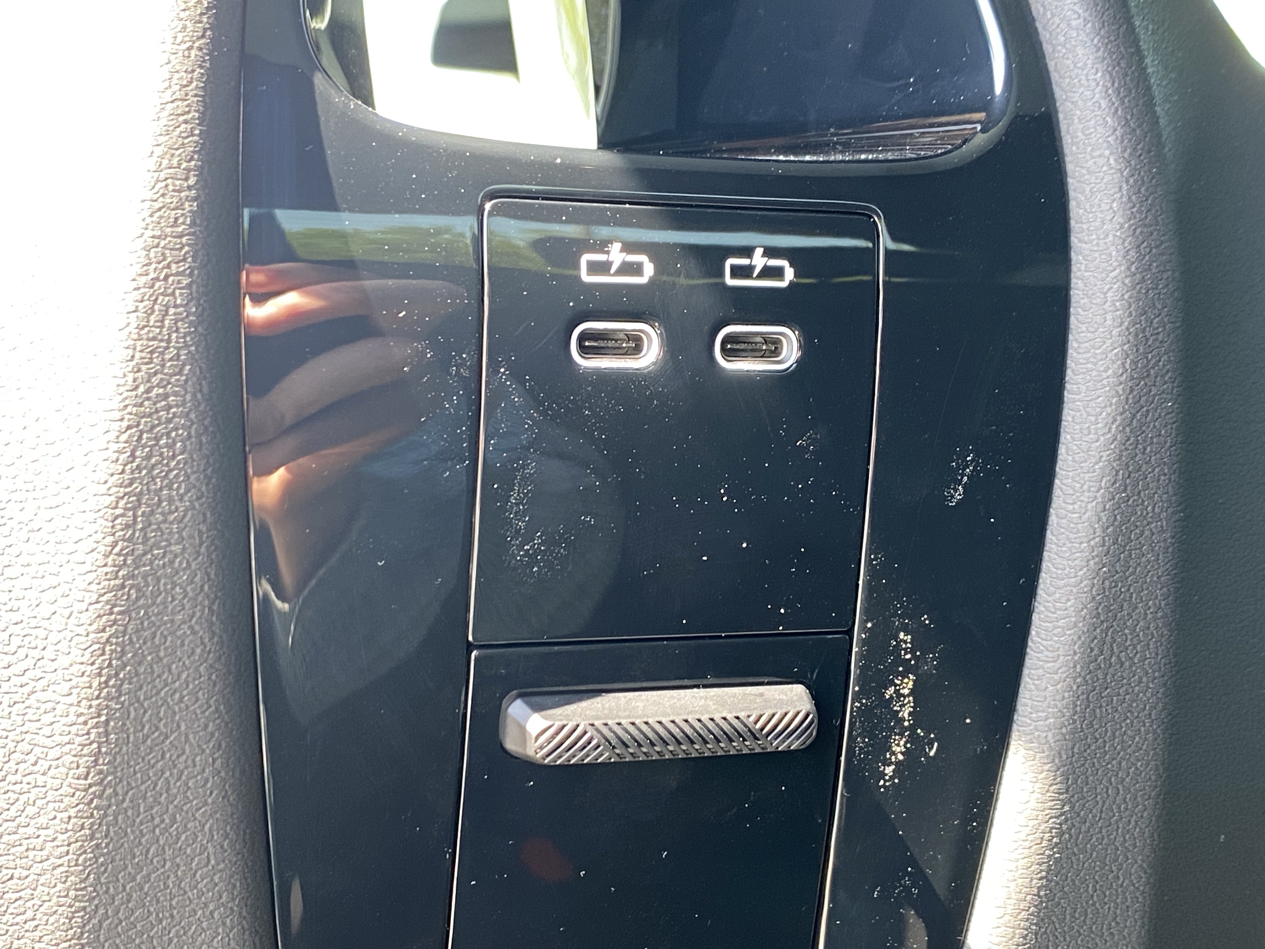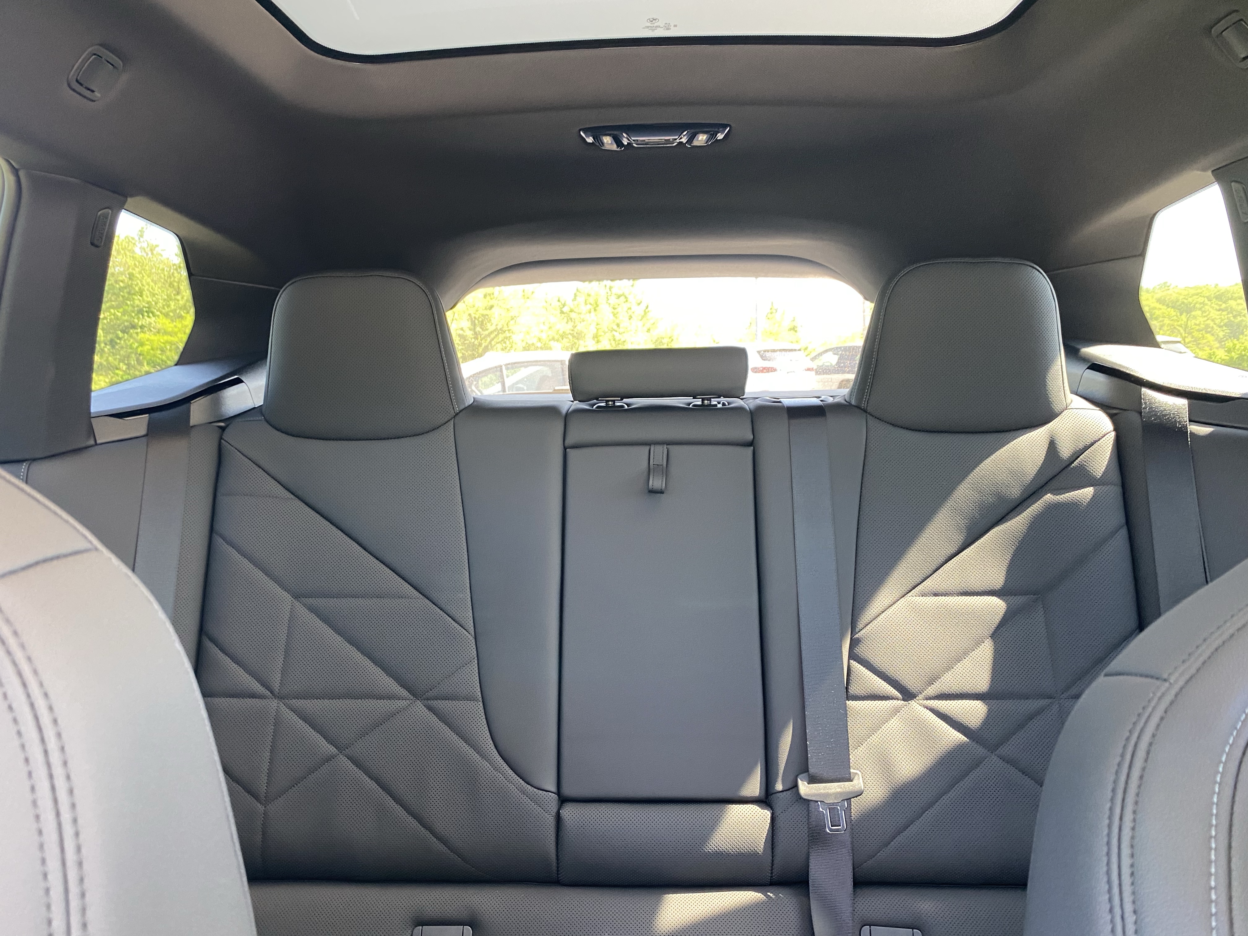 I feel like I’ve said this a million times, but because this is an EV, and especially because this is a BMW, this car is loaded with all kinds of stuff. This includes heated front and rear seats, a heated steering wheel, heated windshield and rear window, three-zone climate controls, an auto-parking feature, a frosted “moonroof”, a full 360-degree backup camera, USB-A and C ports, a wireless charger, wireless Bluetooth, CarPlay, Android Auto, a Harmon Kardon Soundsystem, a BLIS system, lane-keep assist, adaptive cruise control, forward collision warning, and lots and lots of crystals.