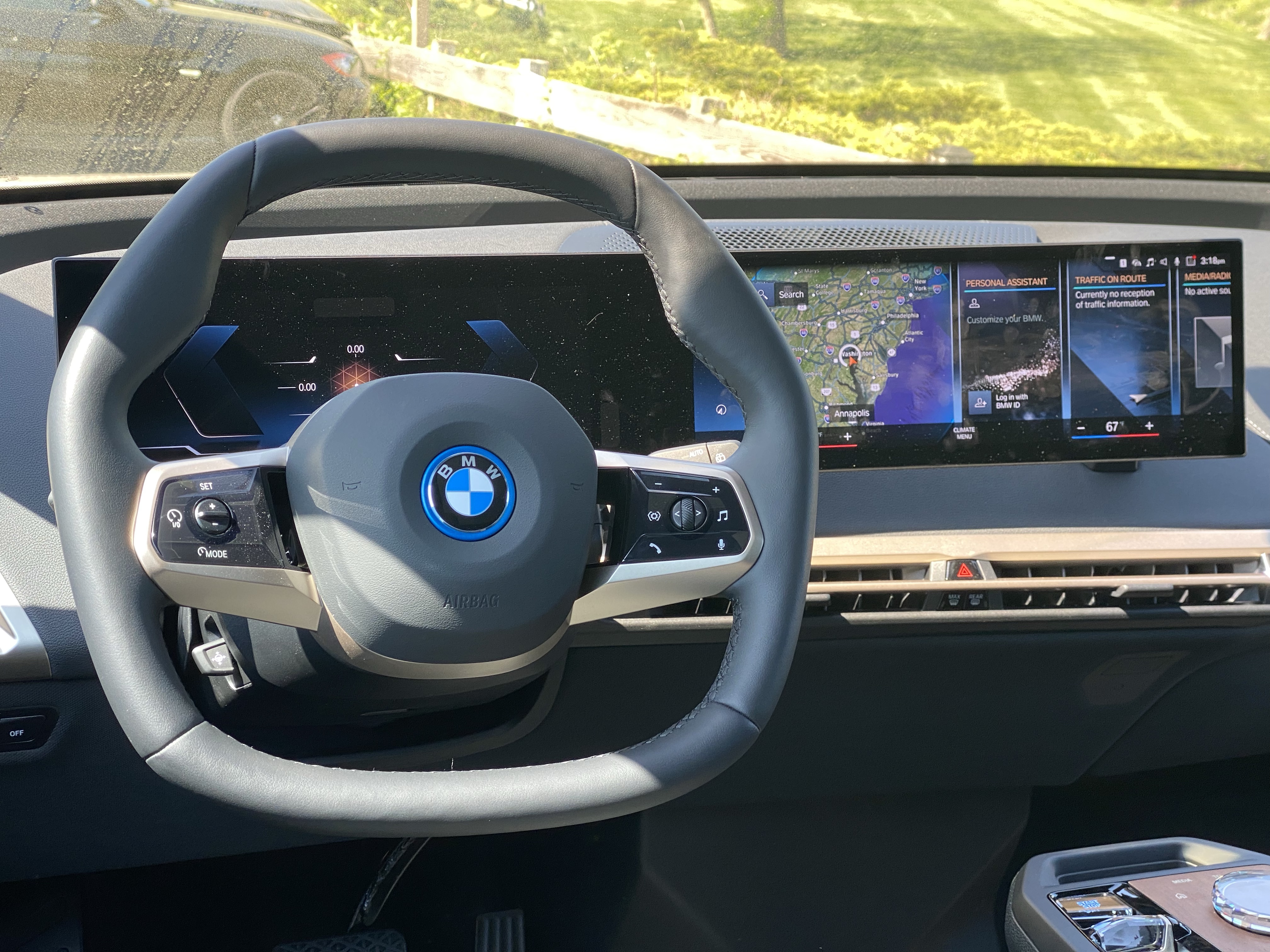 Like the center screen, the iX’s driver’s display is more or less the same. Busy, but there’s enough available for you that it balances out. You have the ability to not only change what is shown on the screen but do so in three different designs. They all look good and while the whole thing is super-duper gimmicky, it’s a fun little time waster if you’re waiting in the car for someone. However, the steering wheel controls themselves were a bit janky to use. I would have preferred buttons over a scroll-wheel-type thing.