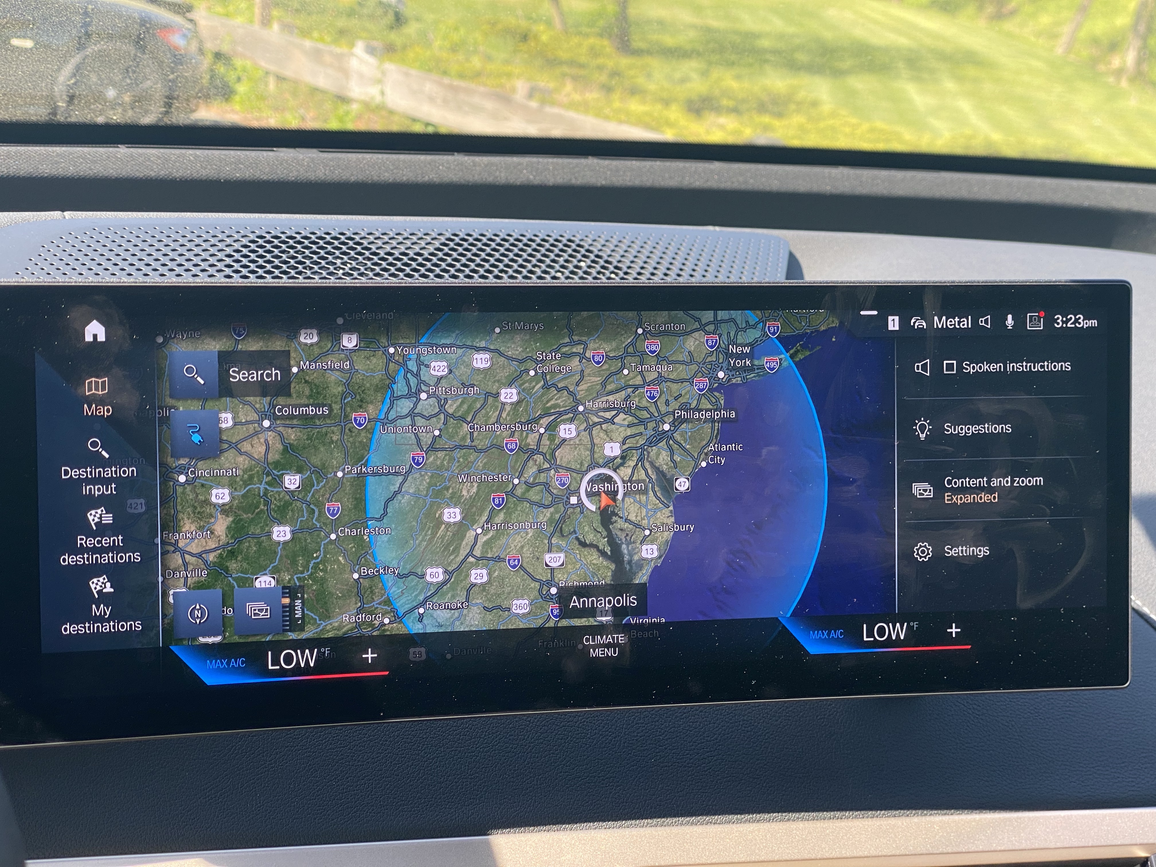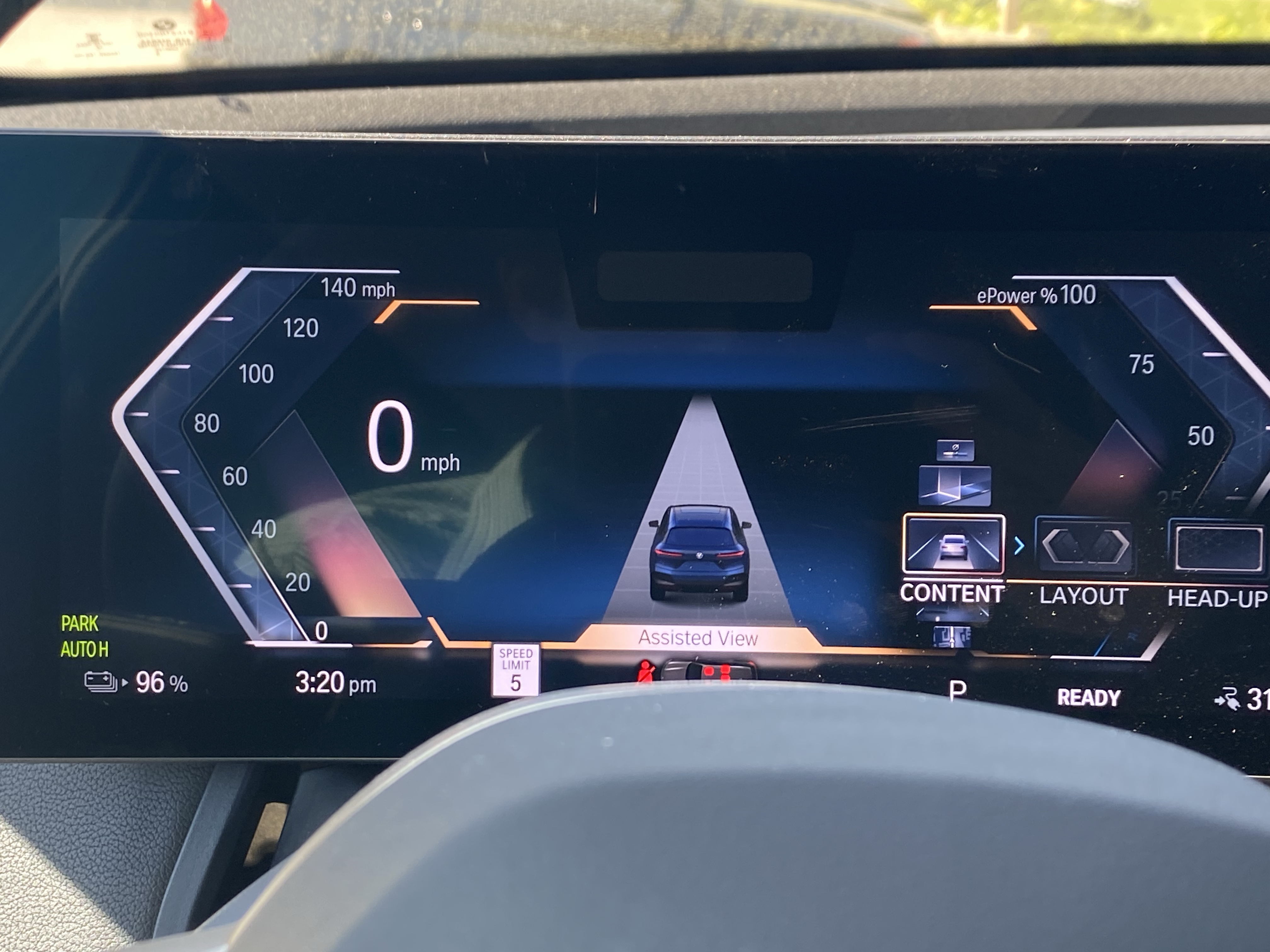 BMW’s iDrve system is about 20 years old and in its 8th iteration. For a while, it has been one of, if not the best, systems to use. But, with this newest generation, I’m sorry to say that the iDrive’s busyness is starting to kill it. This newest sysetm has every conceivable thing and menu and app that you would want on an infotainment screen, but you have to search for it in pages and menus before you finally find what you’re looking for. That being said, the Drive system is still very good at what it does and has a boatload of features that can help you. For one, there’s this AR navigation screen that puts up big ol’ arrows to point you in the right direction. You also have very easy-to-use on-screen climate controls, which is a rarity today. Plus, putting the car in sport mode yields that very nice mountain design on the center screen, but more on that sport mode later.