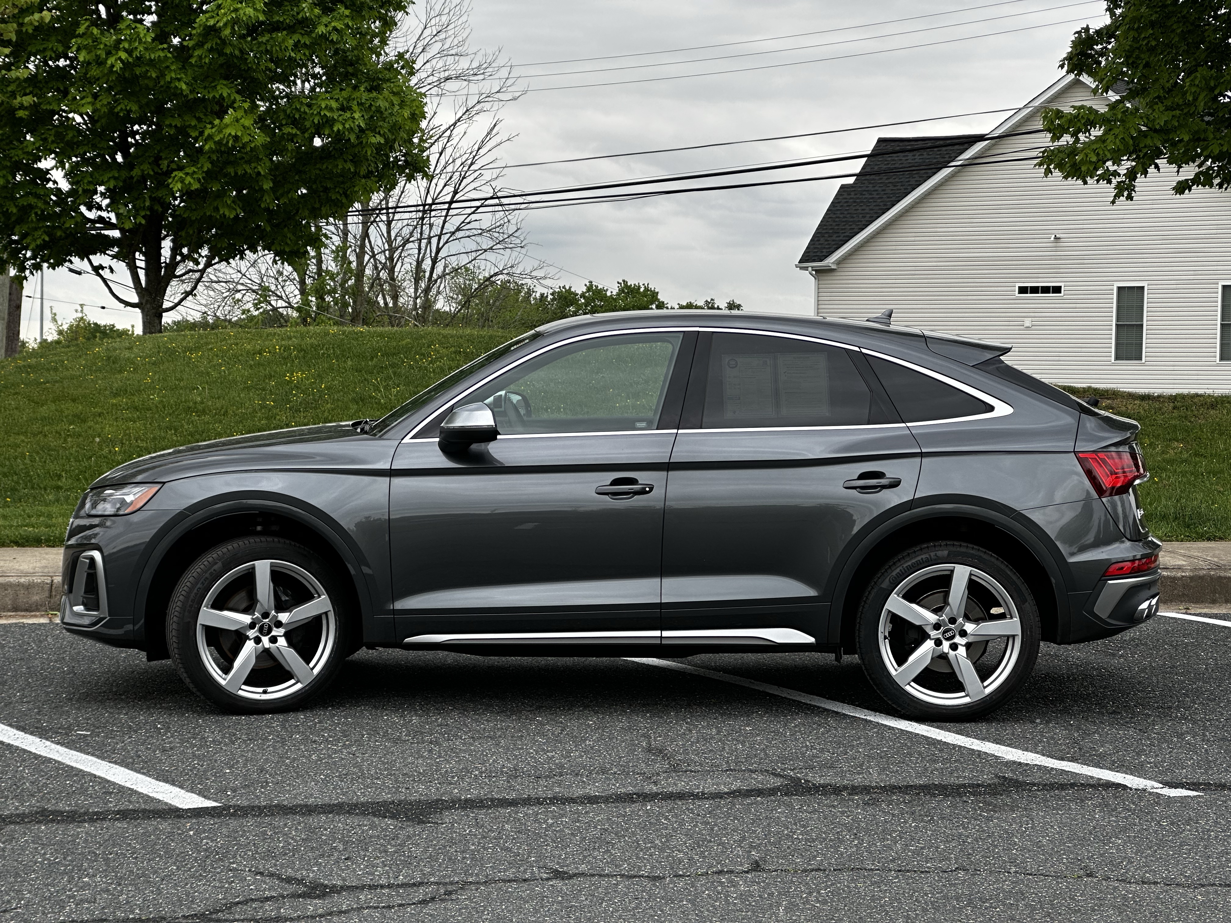 This particular SQ5 is the “Sportback” model. This means that it is a coupe SUV. This means you get sportier looks, with the disadvantage of less cargo space and, depending on the car, rear headroom. Anyway, back to the looks. I don’t know if it is the color, Chronos Grey Metallic, but I can’t say that the SQ5 is particularly striking to look at, especially with the equally grey, but very classy, five-spoke wheels. The good news is that if you choose to get this car in a more exciting color like Audi’s amazing Ultra Blue Metallic, it does look much better.