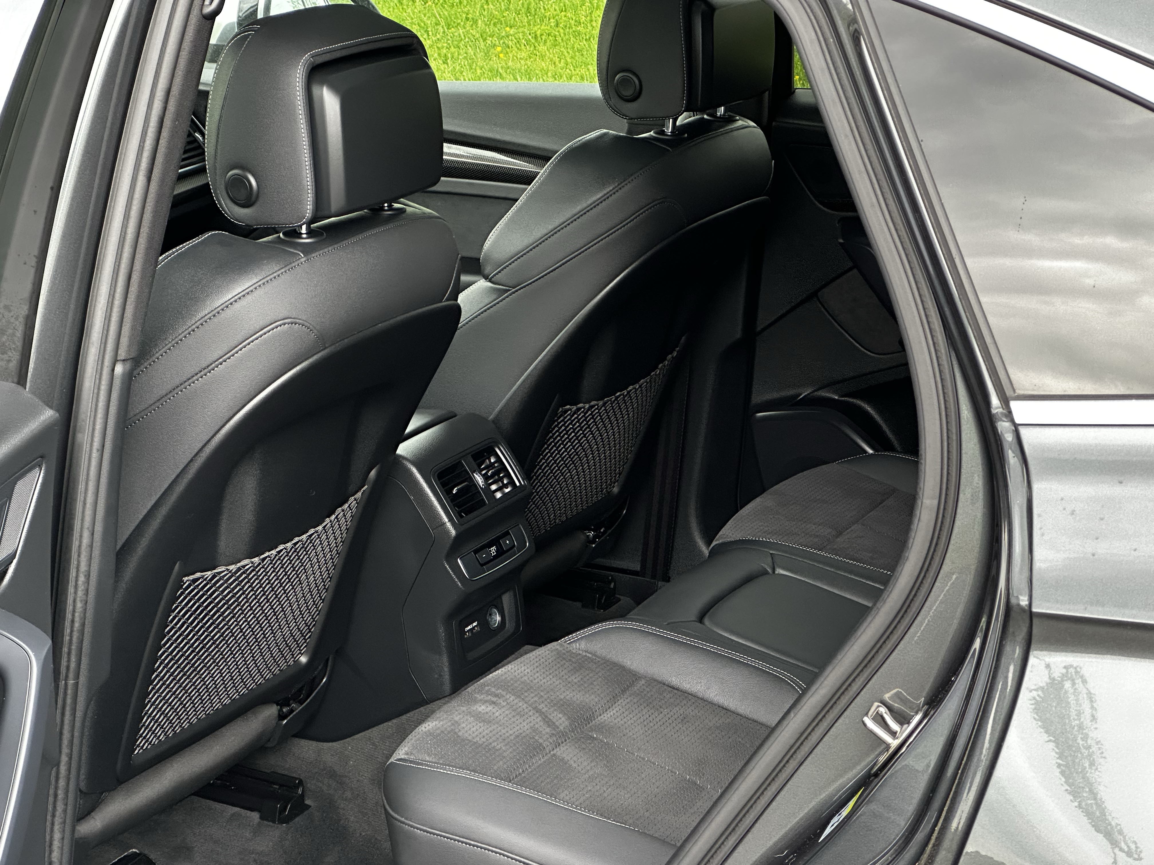 Features that were present on this SQ5 were heated seats, tri-zone climate controls, handsfree Bluetooth, Apple CarPlay, Android Auto, USB-A ports, adaptive cruise control, forward-collision warning, rain-sensing wipers, heated door mirrors, and that’s about it. No USB-C ports, no wireless charging, no lane keep assist (as standard), no heads-up display, and again, no navigation.