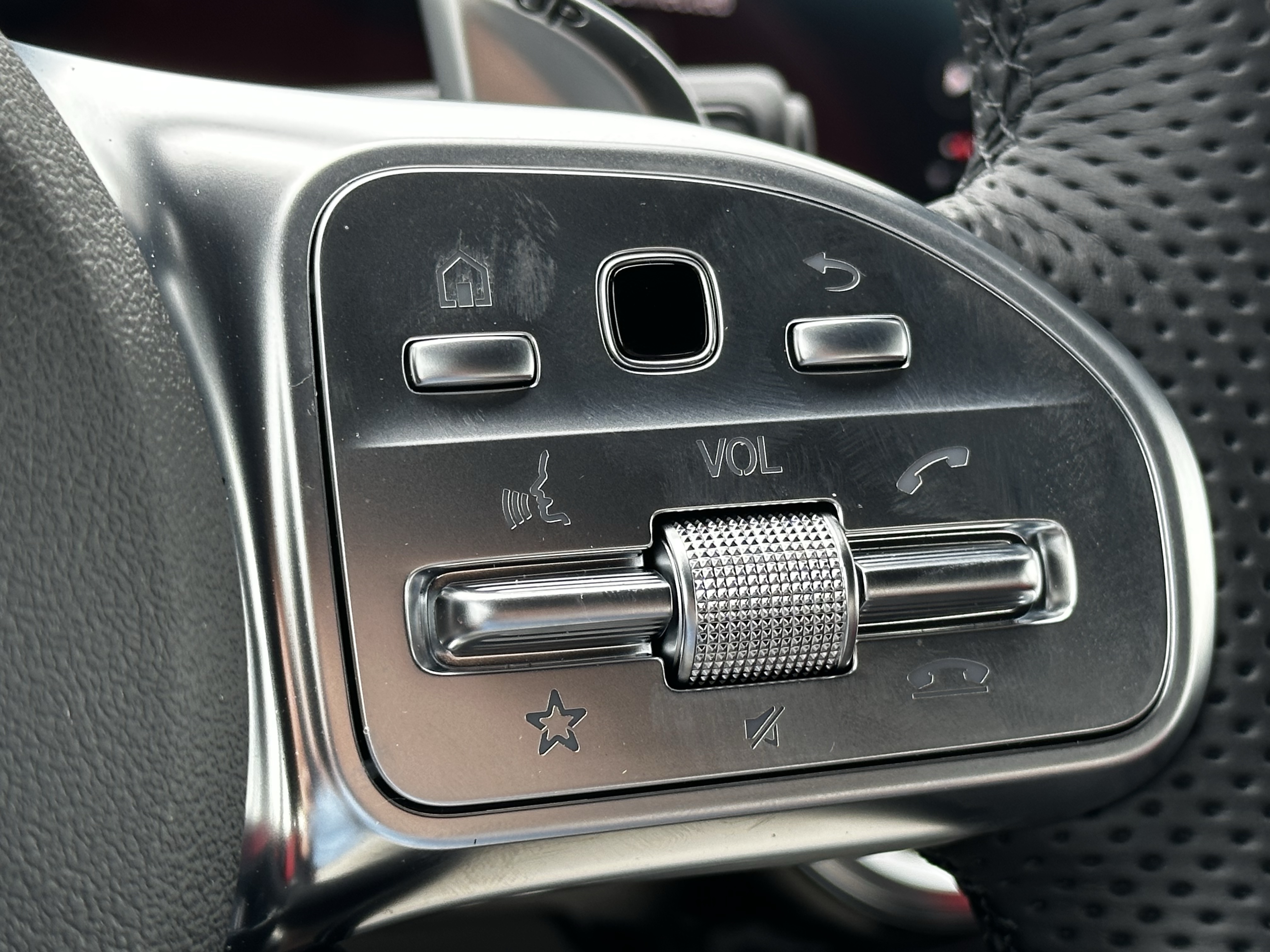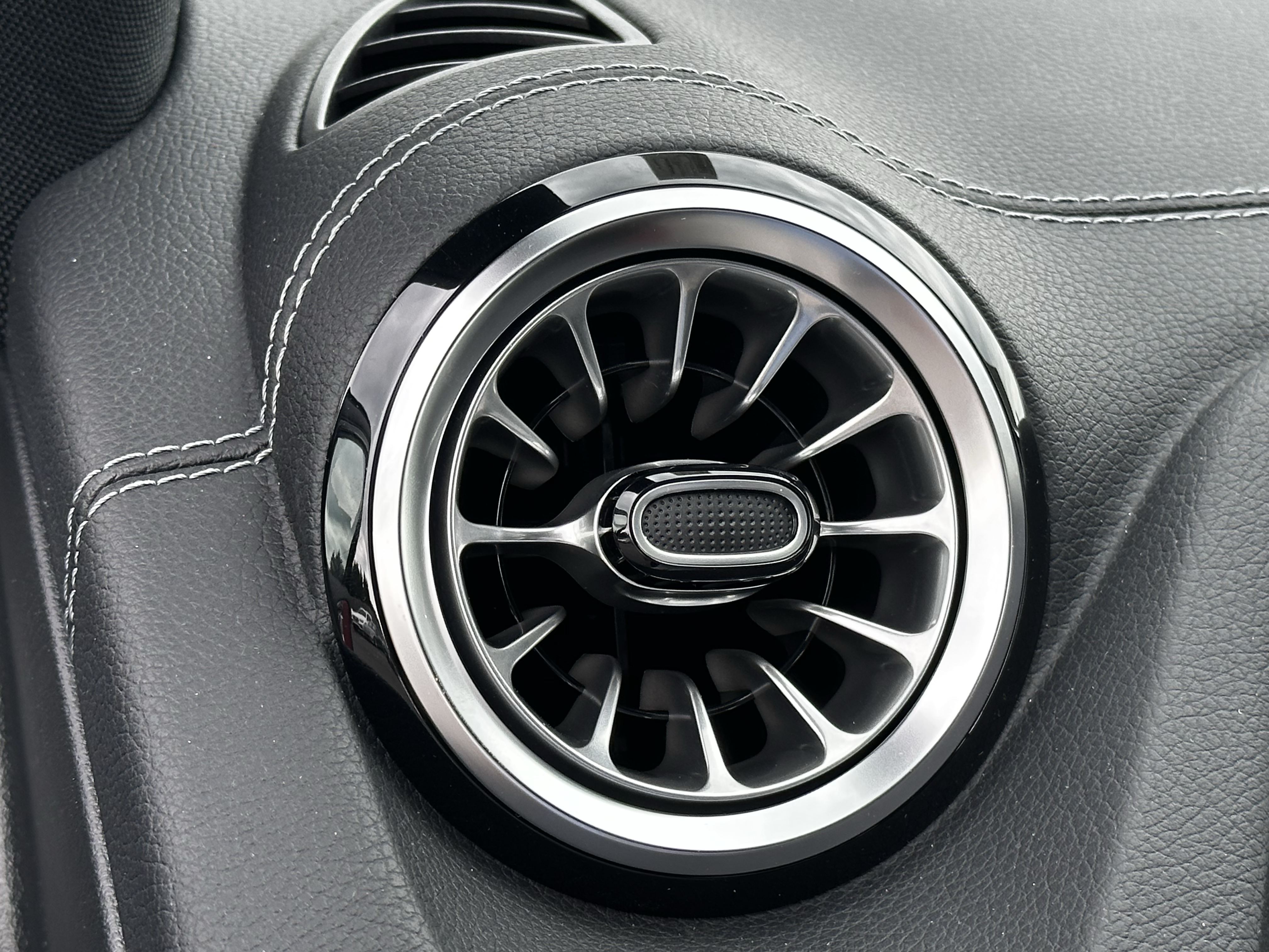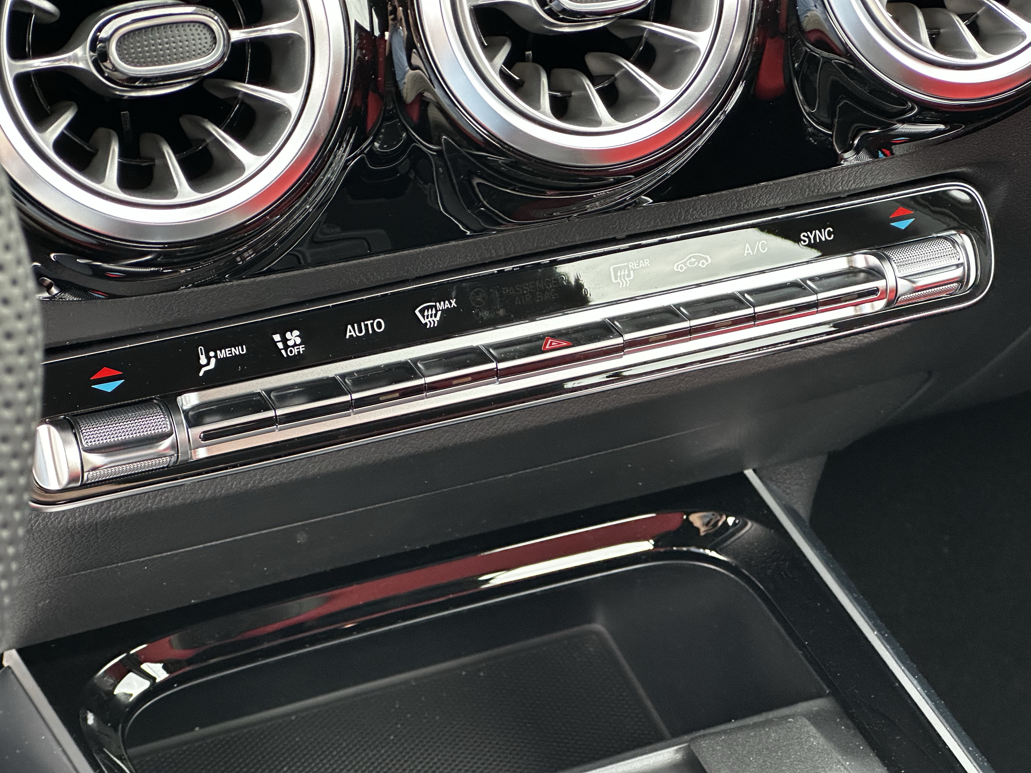 Other stuff you get with the GLA 45 includes heated seats, wireless CarPlay and Auto connectivity, ambient lighting, dual-zone climate controls, rain-sensing wipers, BLIS monitoring, adaptive high beam headlights, an illuminated star (subtle, right), and an AMG Drive Unit.