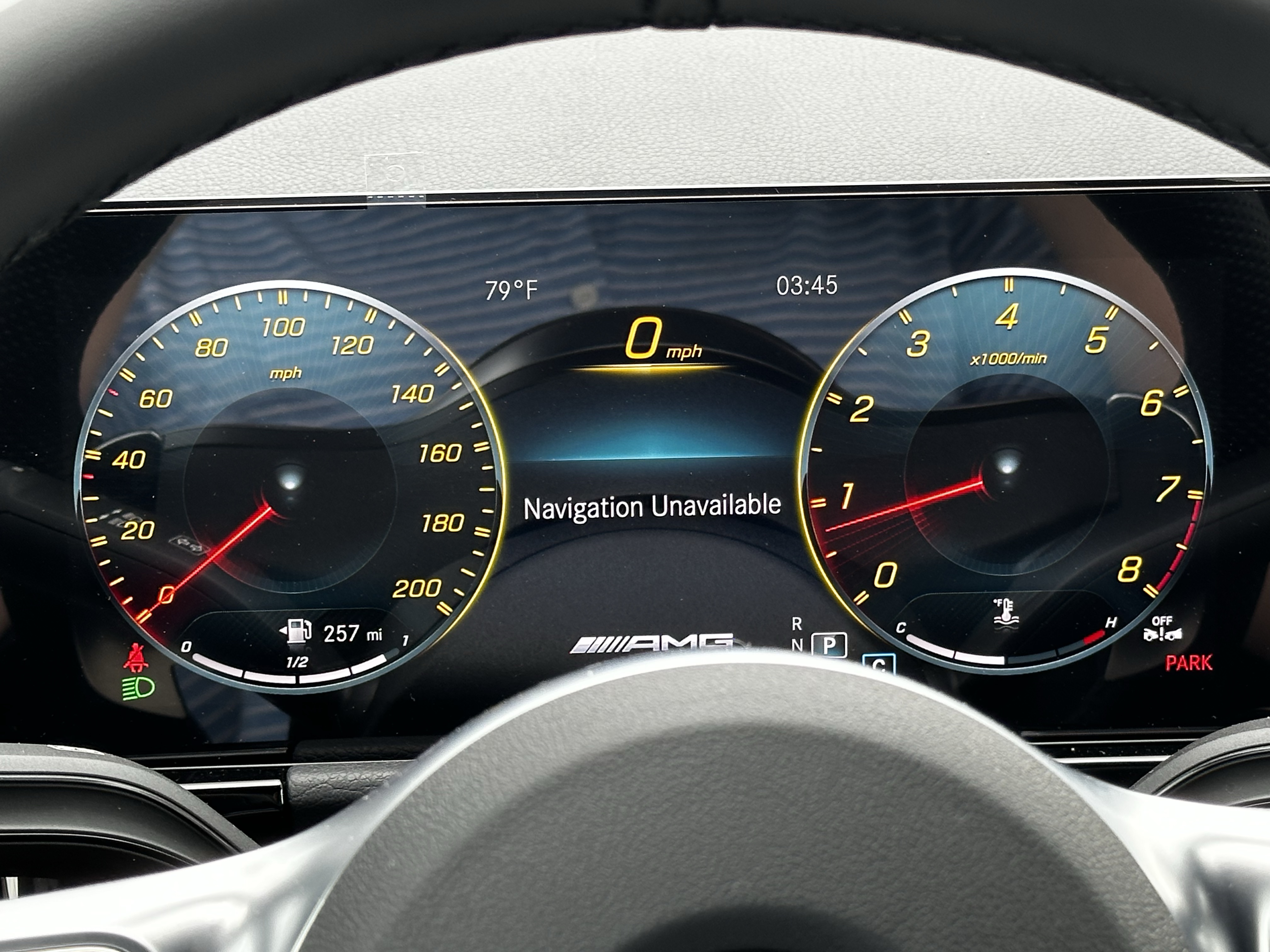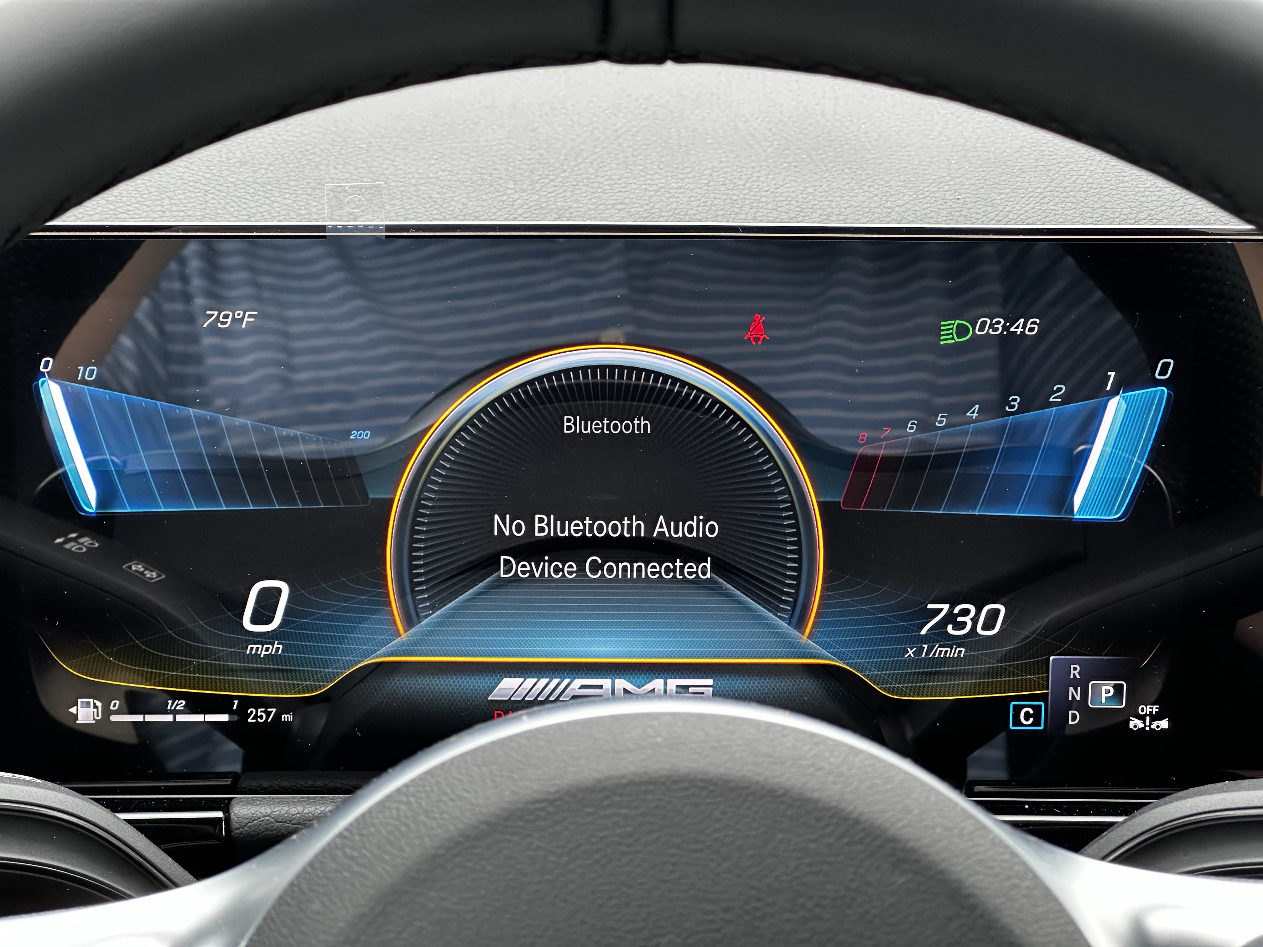 Like the center UI, the driver’s screen is also pretty spot on in terms of what it offers. It is very configurable with the option to choose from many different themes and layouts from a normal dual-gauge setup to the option of a jet-like AMG-performance setup. You’re also able to basically show any form of information you want on the screen at any time short of navigation because, again, this car doesn’t have it. However, I have driven enough Benz models with navigation to tell you that the AMG-performance theme with navigation is the way to go.