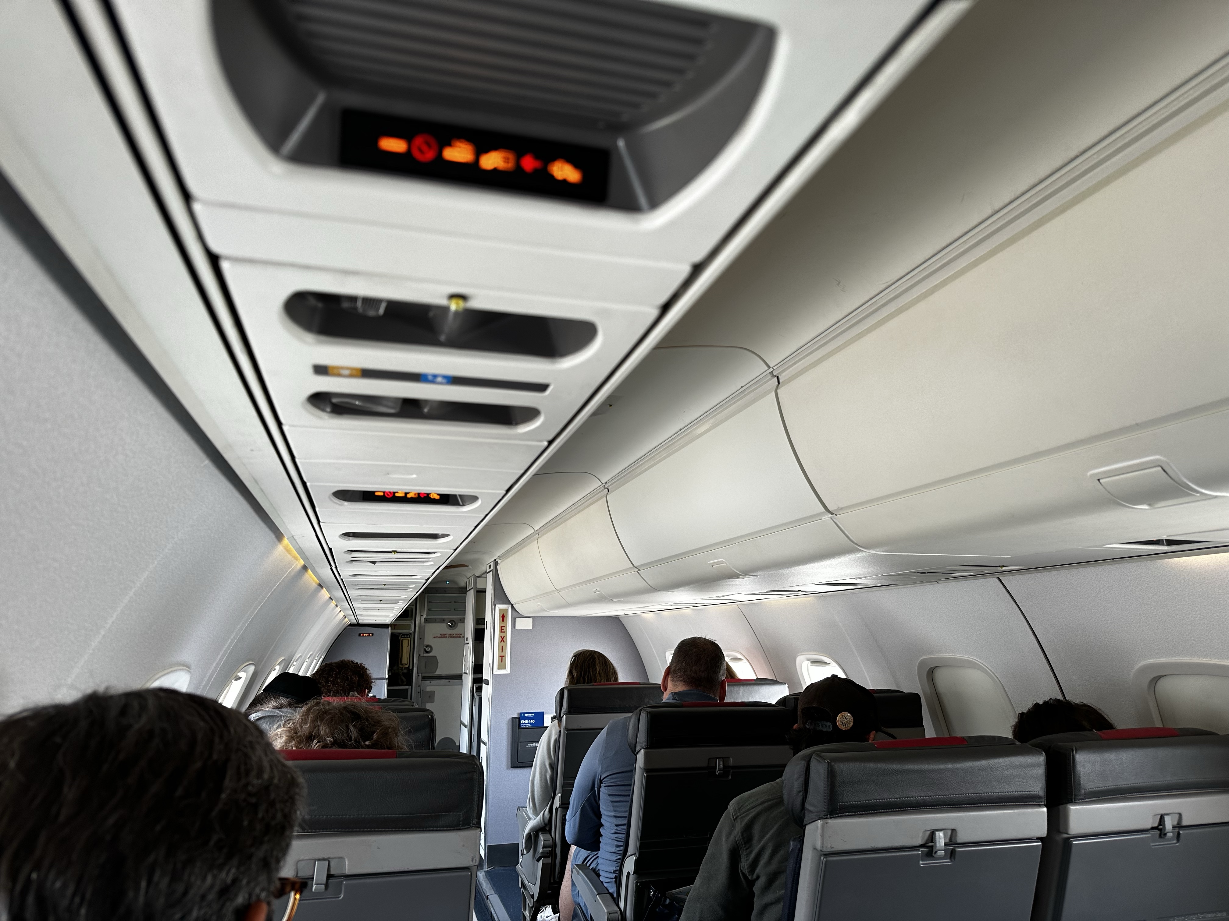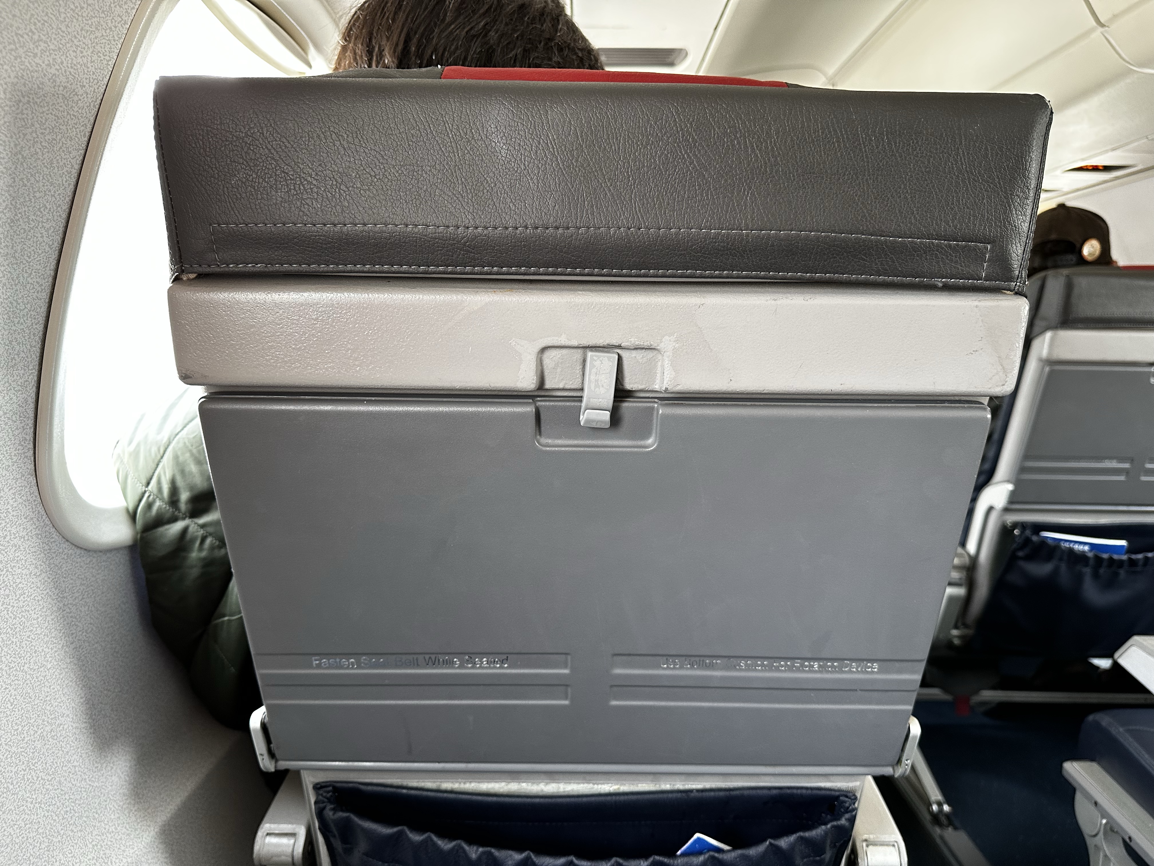 Anyway: back to the cabin. The plane on my flight up to Plattsburgh was… “tired.” Look, a regional jet that has flown 30 million cycles isn’t going to be in awesome shape. But, it was a bit of a letdown compared to the shiny exterior. My seat was very comfortable, but all around me were paint chips and other bits of wear and tear that kinda grossed me out. Either that or the fact my tray table was un-wiped really motivated me to switch seats.