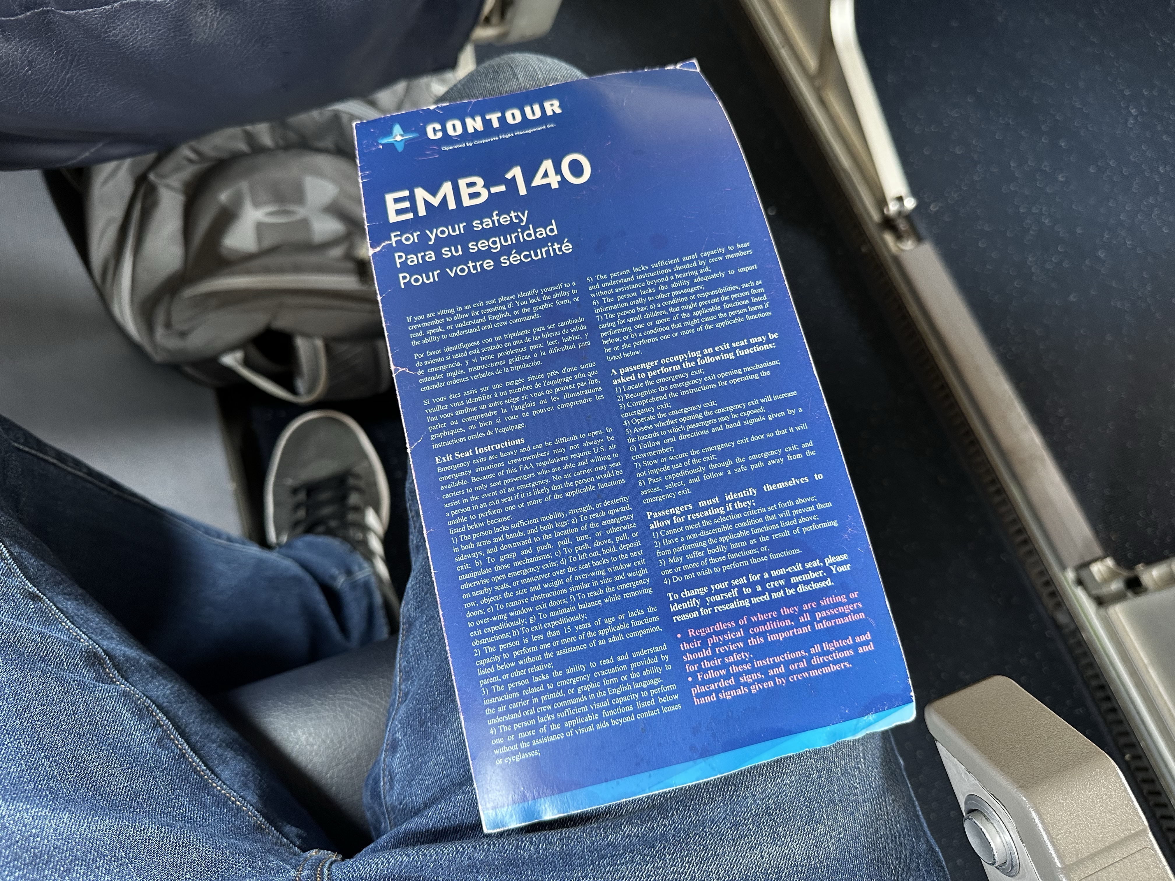 Here’s a fun fact: for these EAS flights, Contour is required to offer a minimum of 30 seats on their planes. So, guess what they did? Yep, they put only 30 seats in the cabin. This not only means that you get a whopping 36″ of pitch, but on their larger ERJ-145 planes, there’s a huge space in the back of the plane with nothing in it.