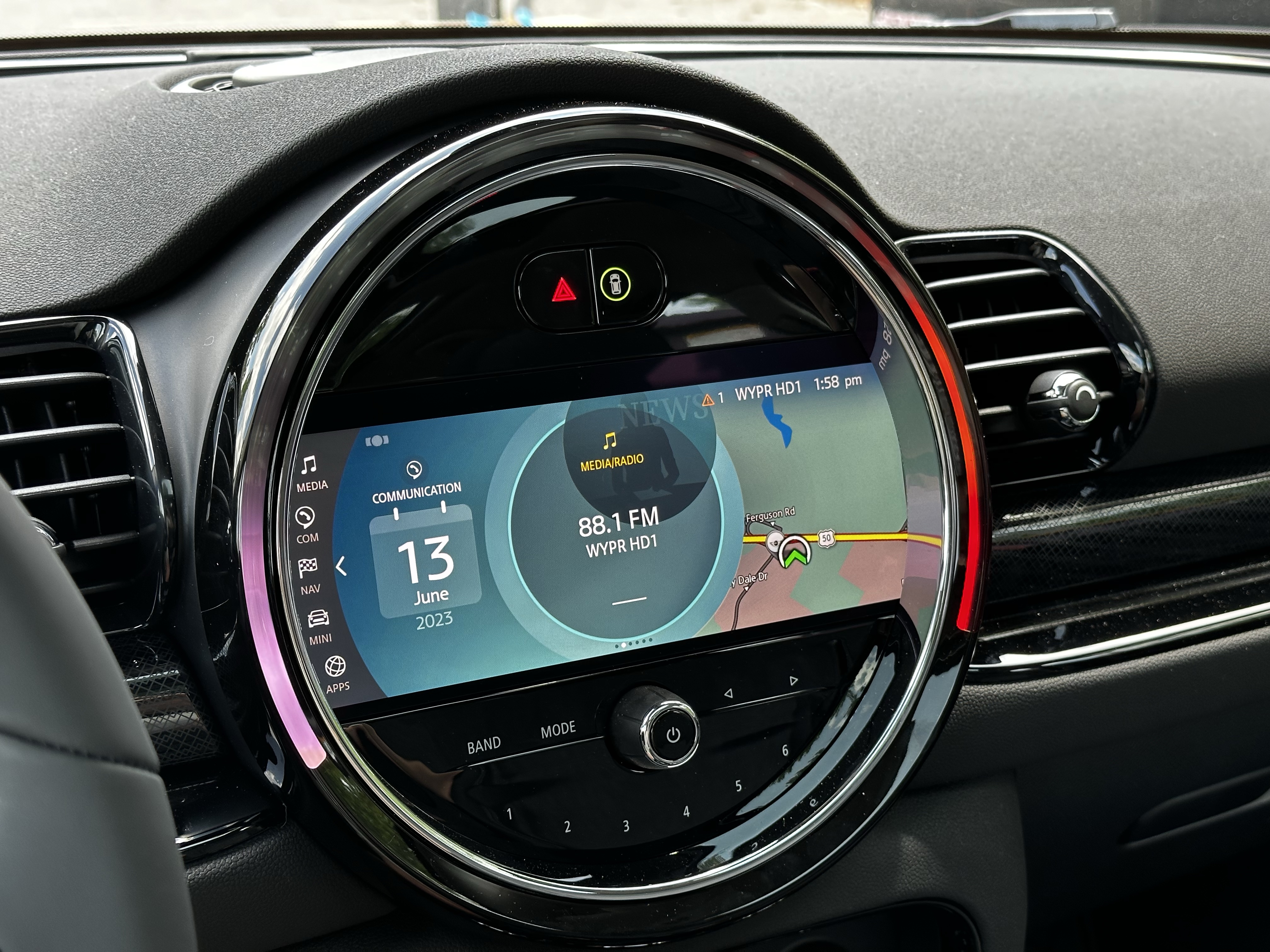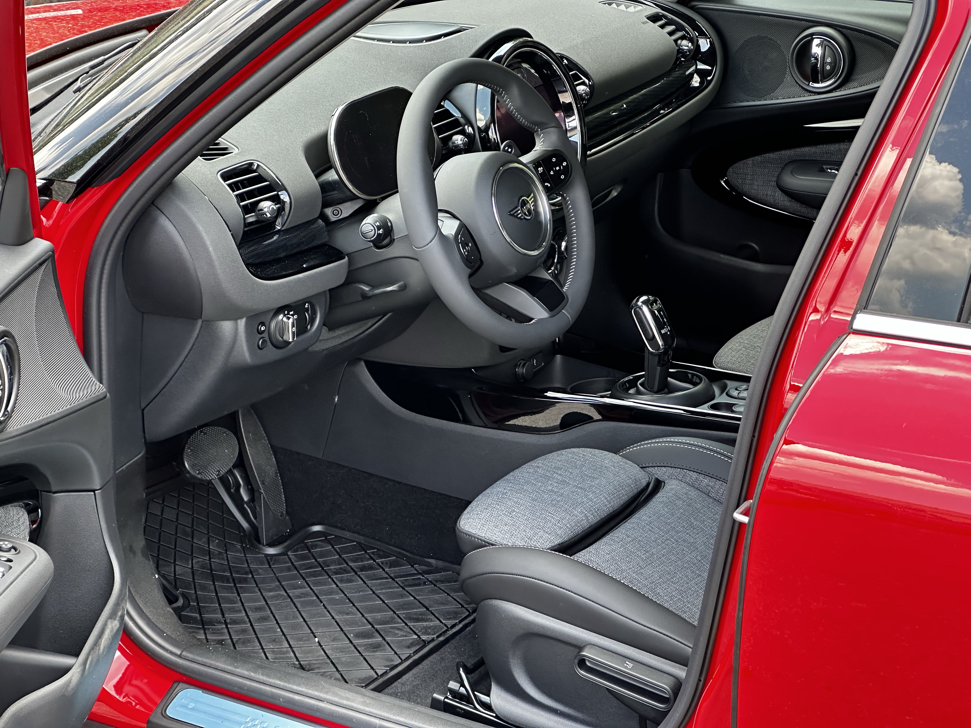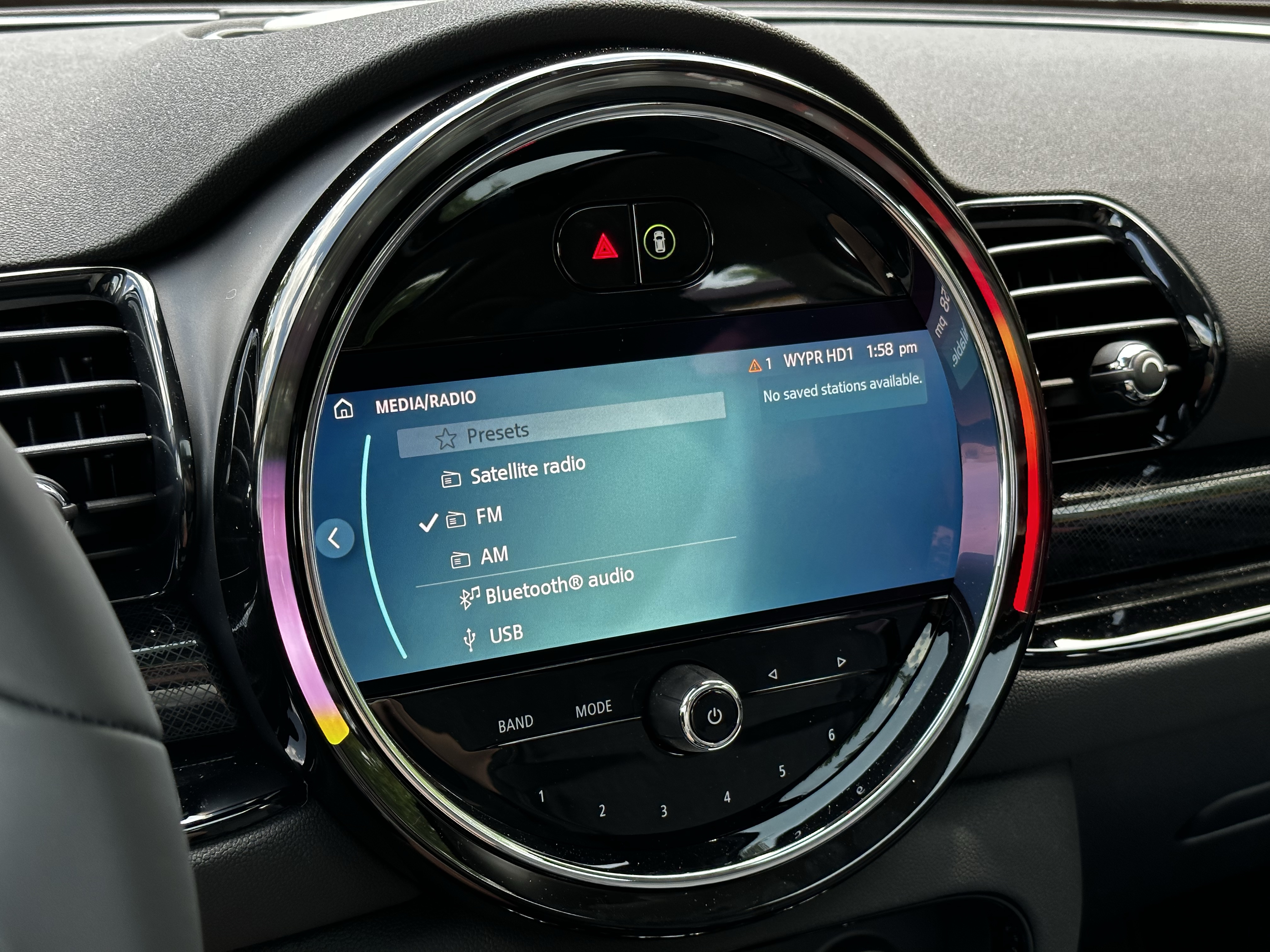 What you do get in the Clubman are heated seats, a heated front and rear windshield, Bluetooth, CarPlay, USB-A/USB-C ports, a “dual moonroof,” a handsfree tailgate, adaptive cruise control, an “Active Driving Assistant” that gives you forward collision warning, but no BLIS system.