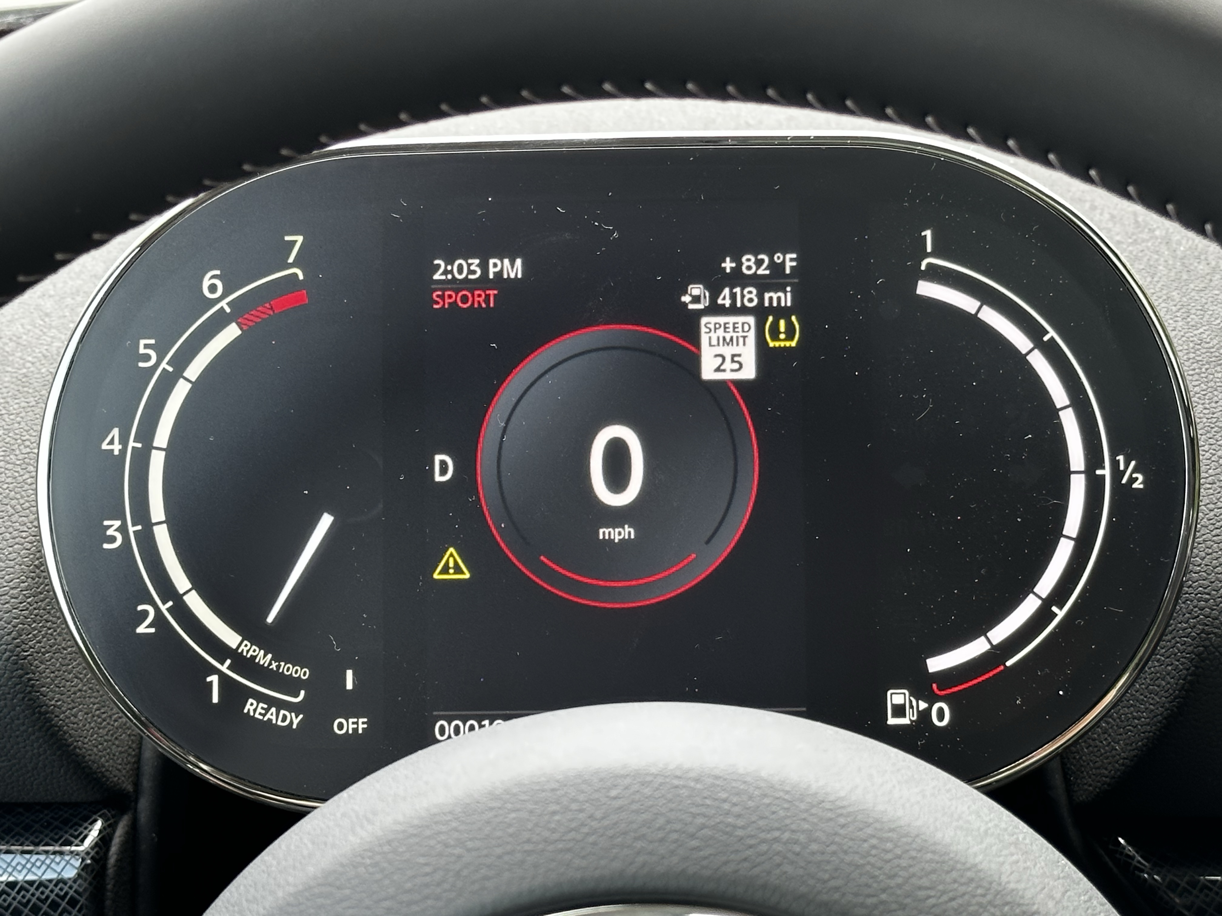 Mini’s display screen is as good as it is iconic. There aren’t a lot of menus to get lost in, you can have a dual (or tri) function setup to show whatever important features you might want to know, and there are plenty of physical buttons integrated into the system to make analogers (new word I just made up) happy. Plus, and this is my favorite word little thing, when you put the car in “mid” driving mode, the screen says the word “mid” in large lettering which, if you’re as chronically online as I am, is kind of funny.