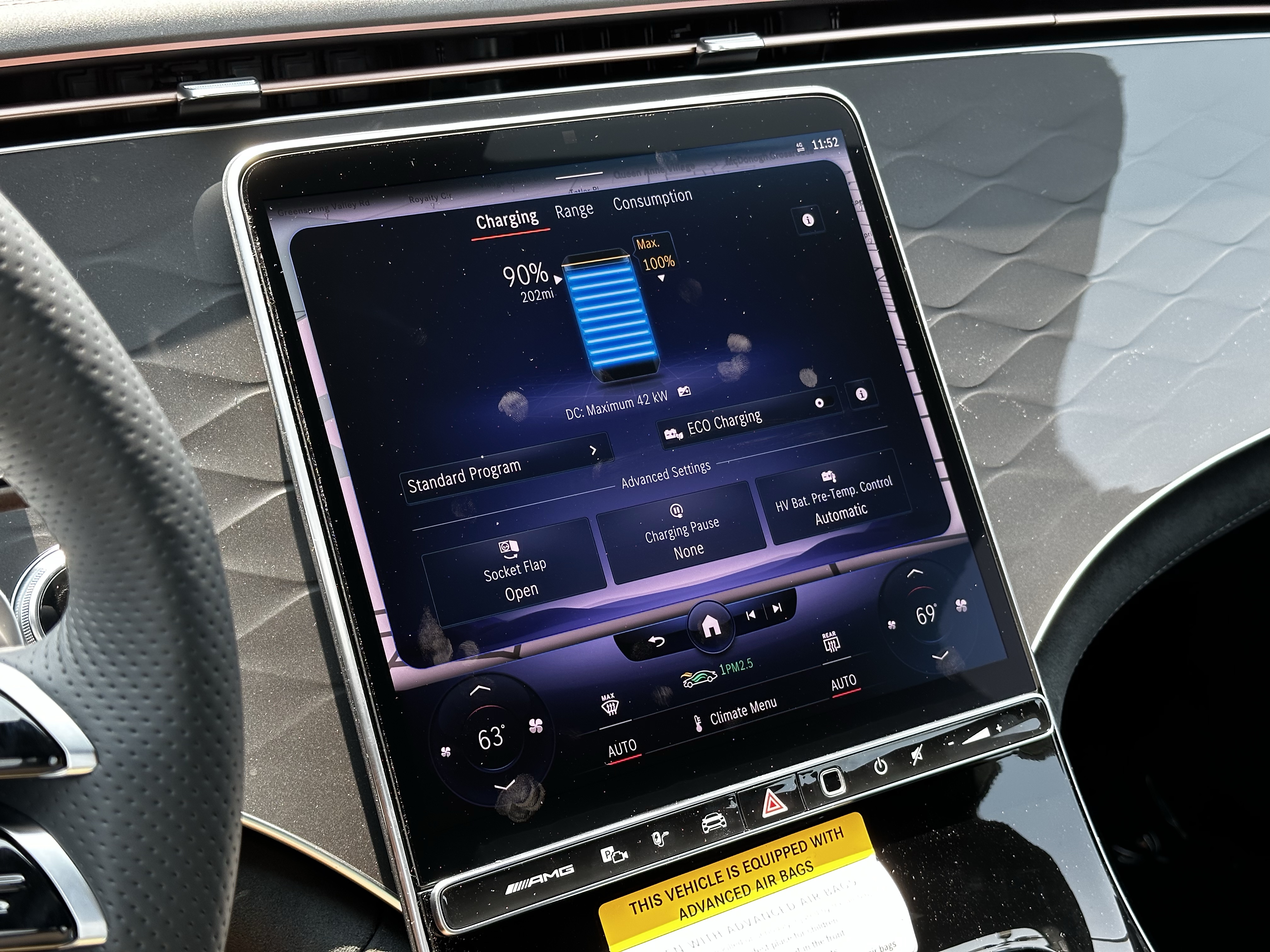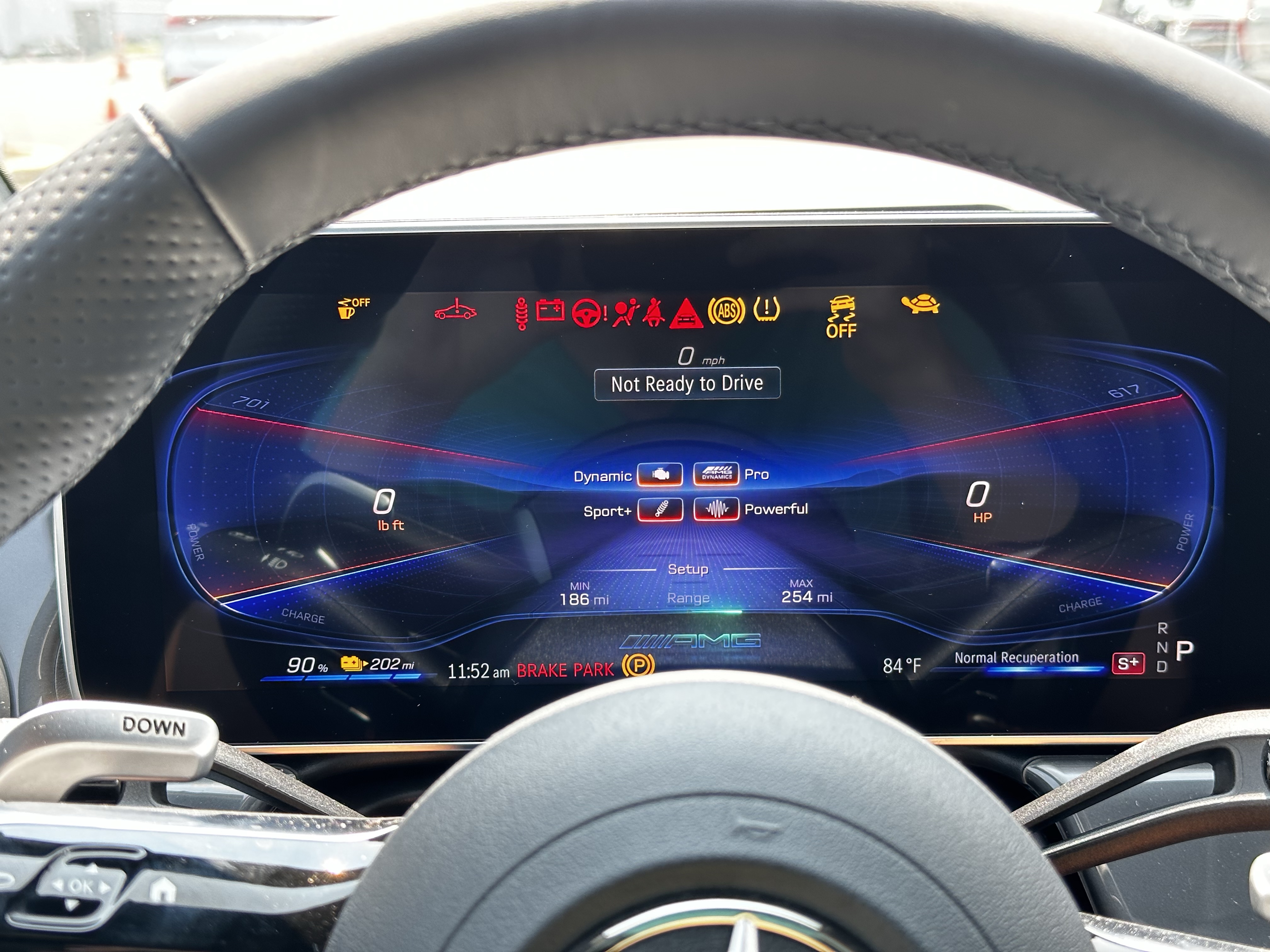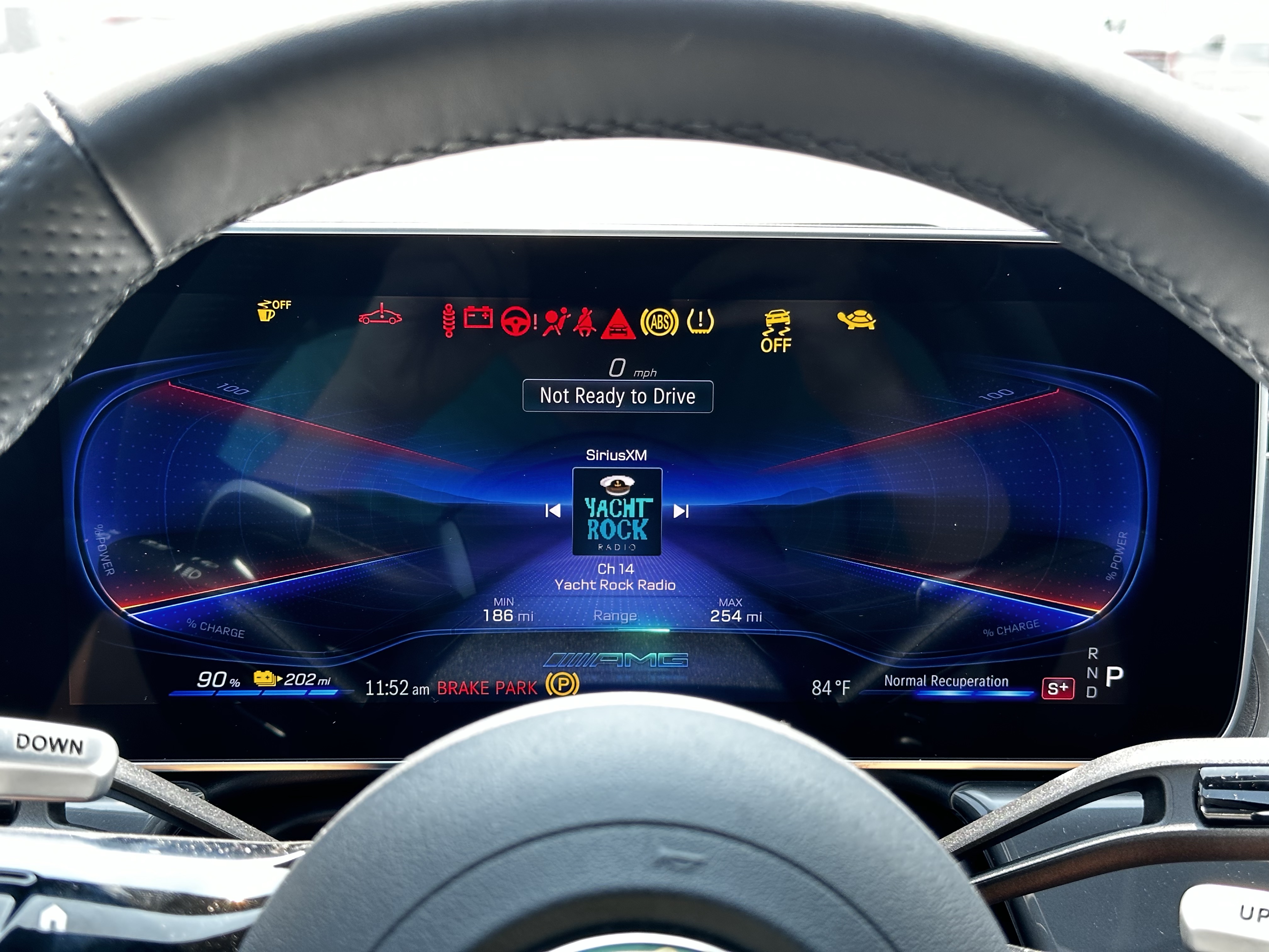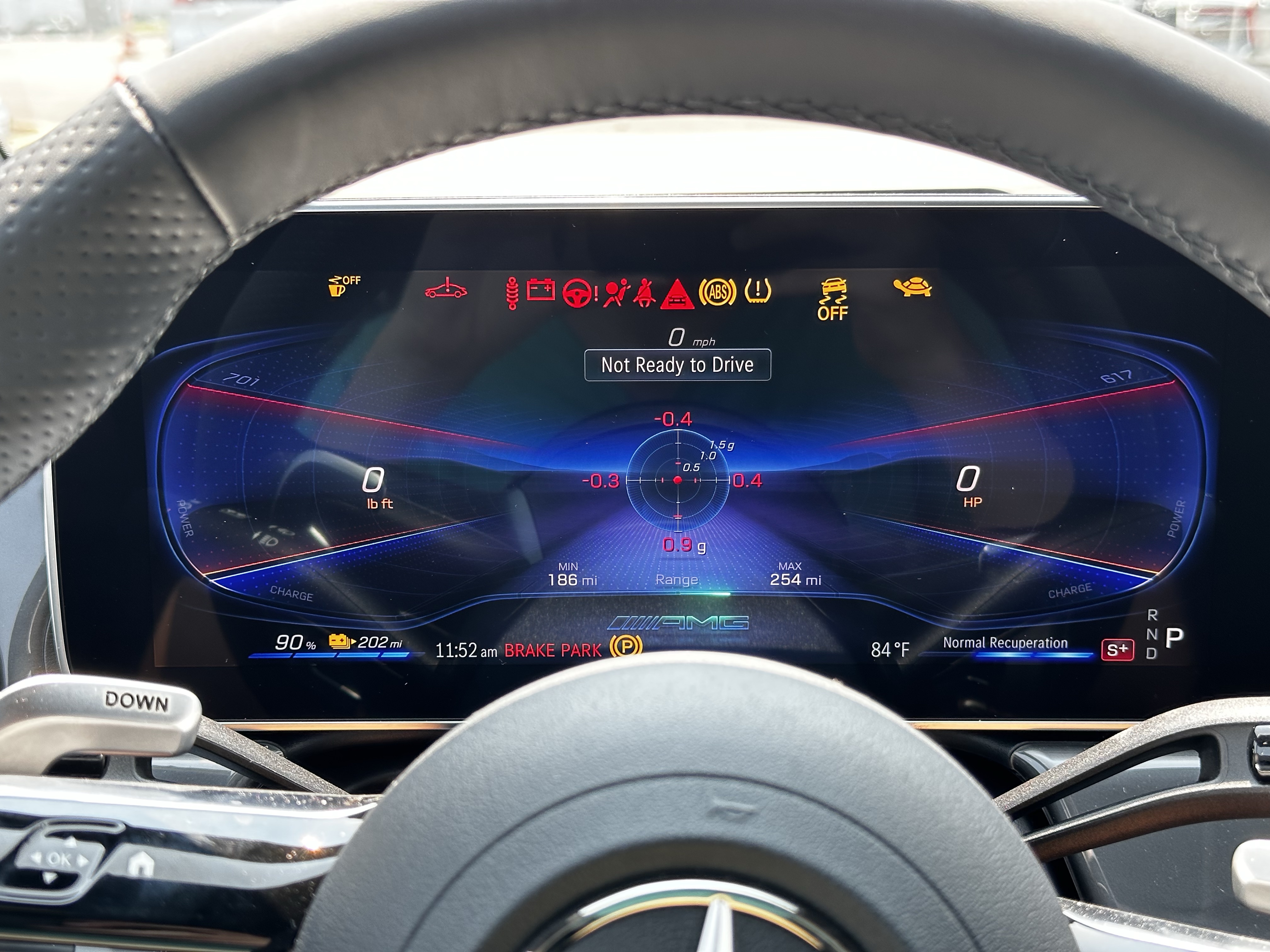 Okay, the second most impressive thing about this car: the adaptive (?) regenerative braking. If you hold down the left steering wheel paddle, the cars regenerative braking system will automatically decide how much regen to use at any given moment based on a million different sensors placed around the vehicle. For example: if you’re going down a hill, the regen will be more forced. If you’re taking a turn hard, the regen will be more forced. Even if the car senses you’re coming up to a stop sign, the regen will be more forced. It was so weird, yet utterly brilliant. I love weird German engineering. Good job, Mercedes.