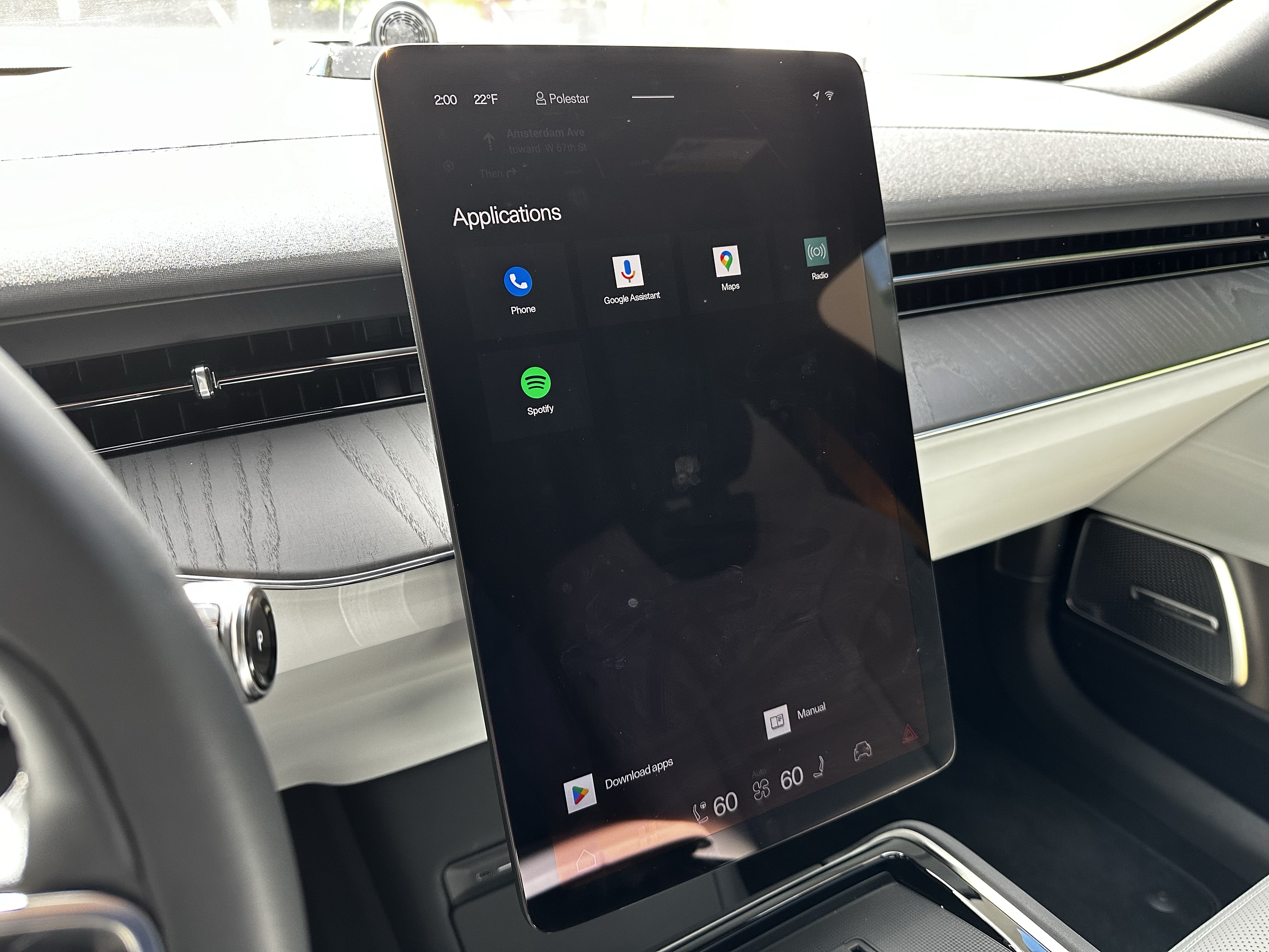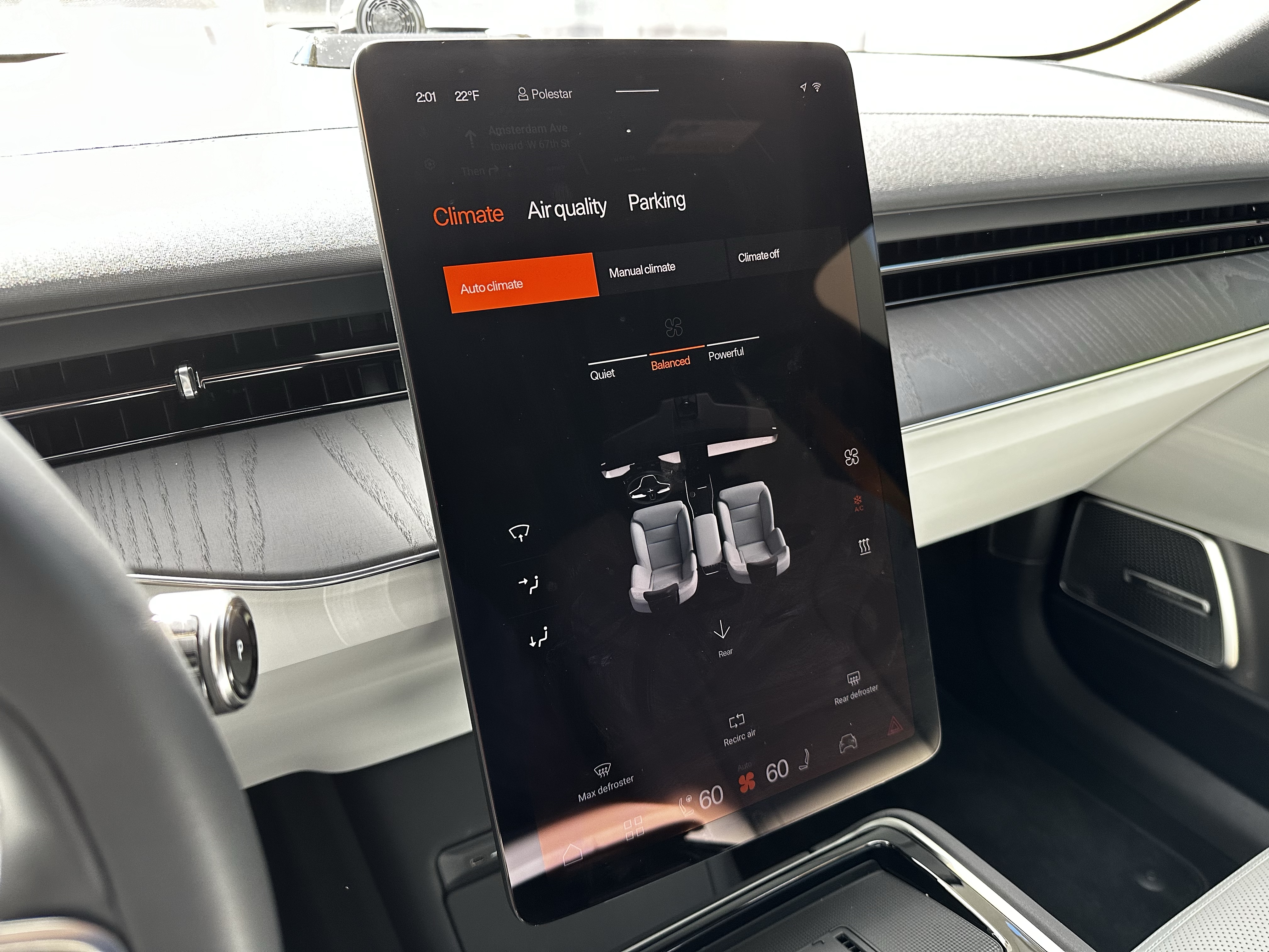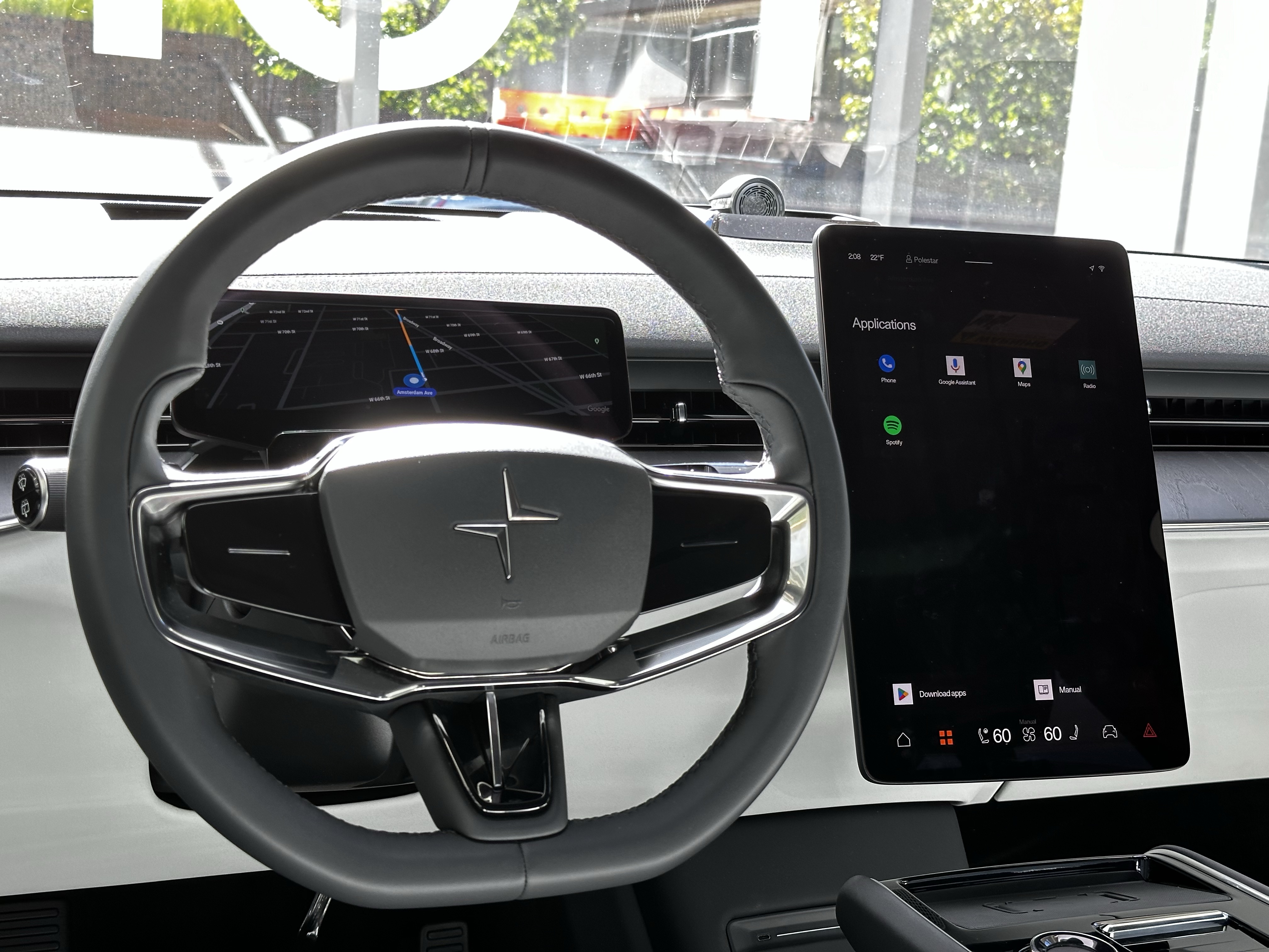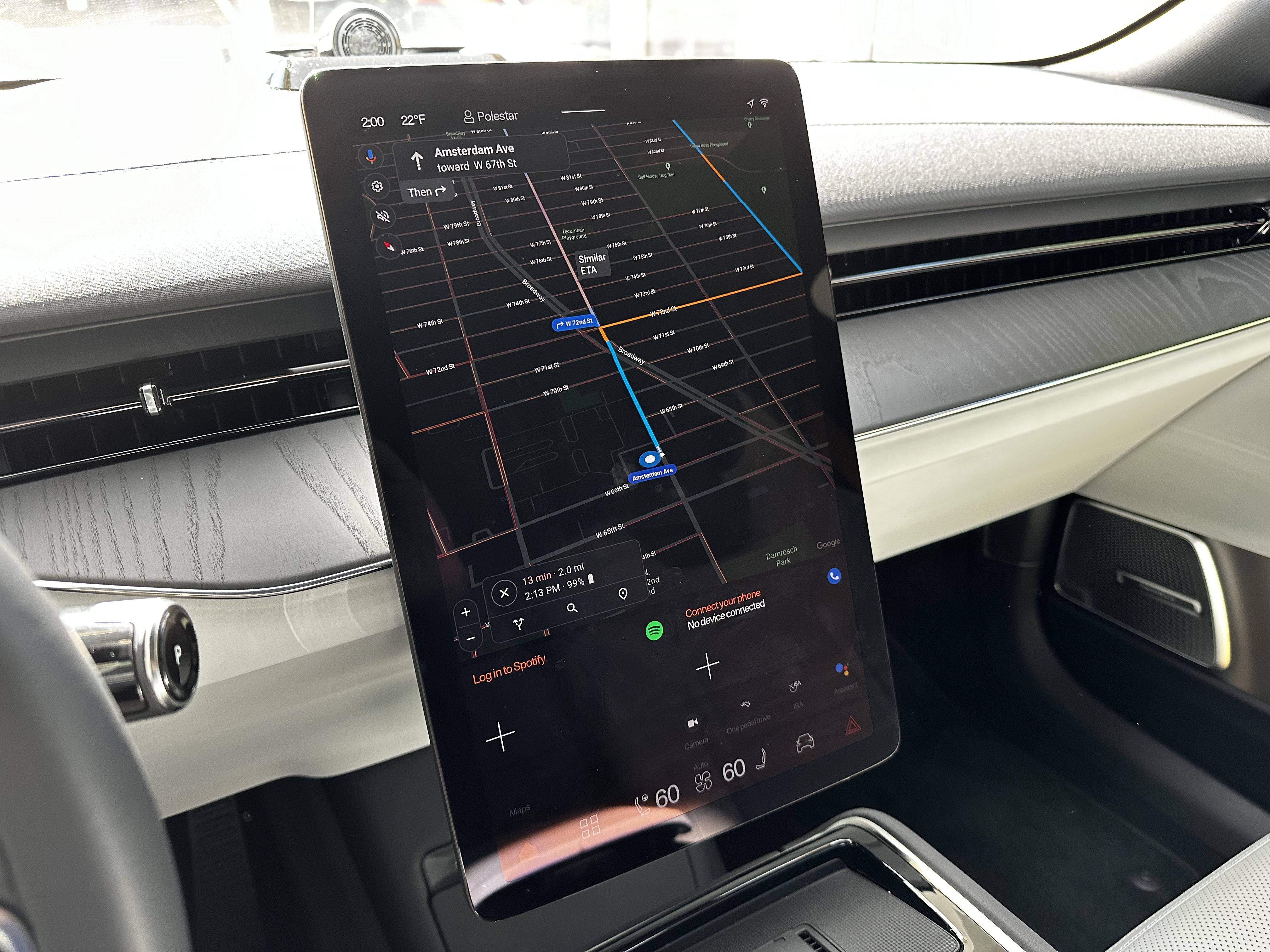 The fact that this is a pre-production car starts to be apparent when you realize that not everything on this screen can be utilized just yet. So let’s start with the physical aspect: it is large. Look, you all know my standpoint on screens, and I feel that this titers on the edge of being too big and obnoxious for me. I’m a bigger fan of the screen size on the Polestar 2, but complaining won’t get me anywhere.