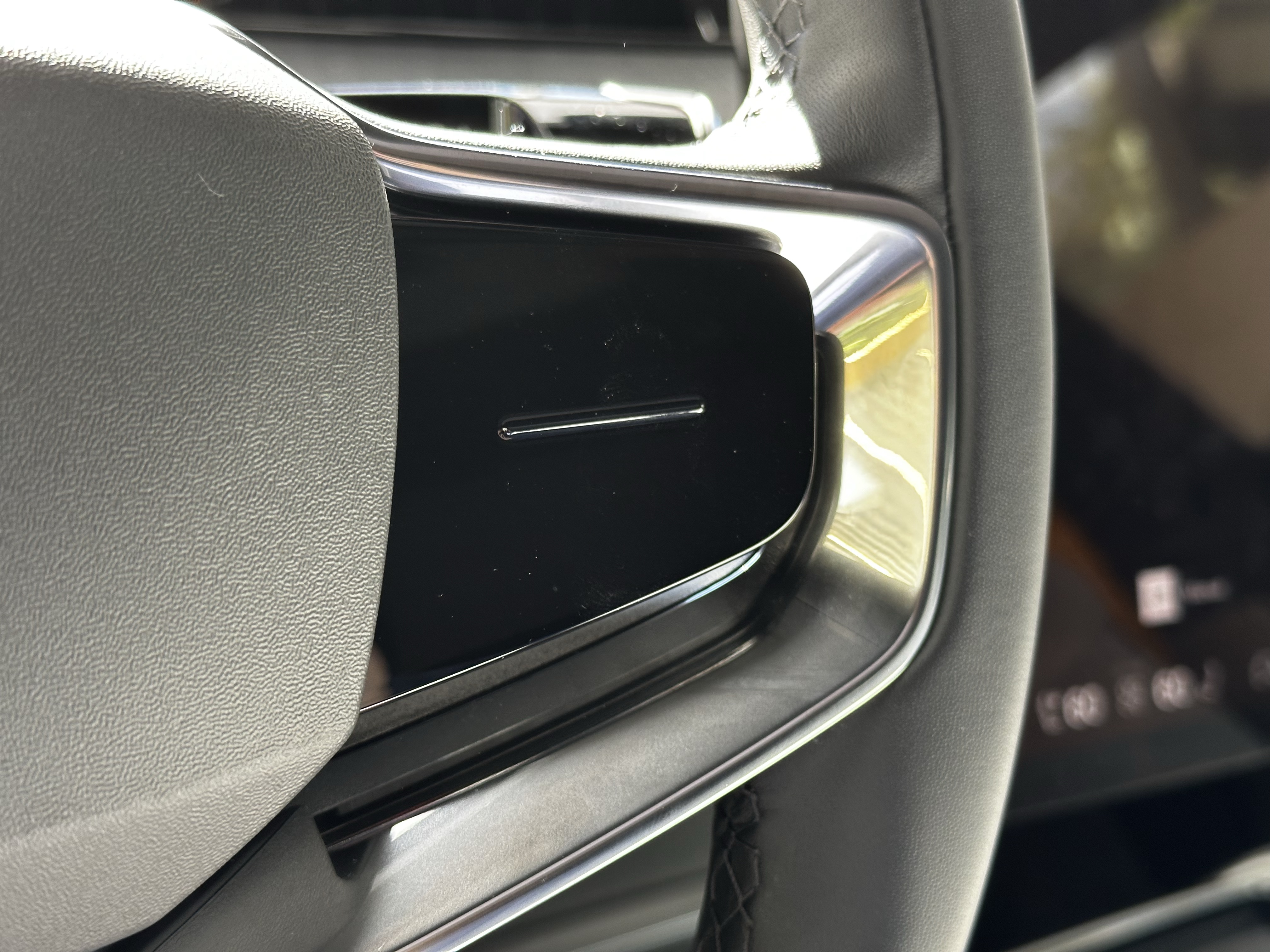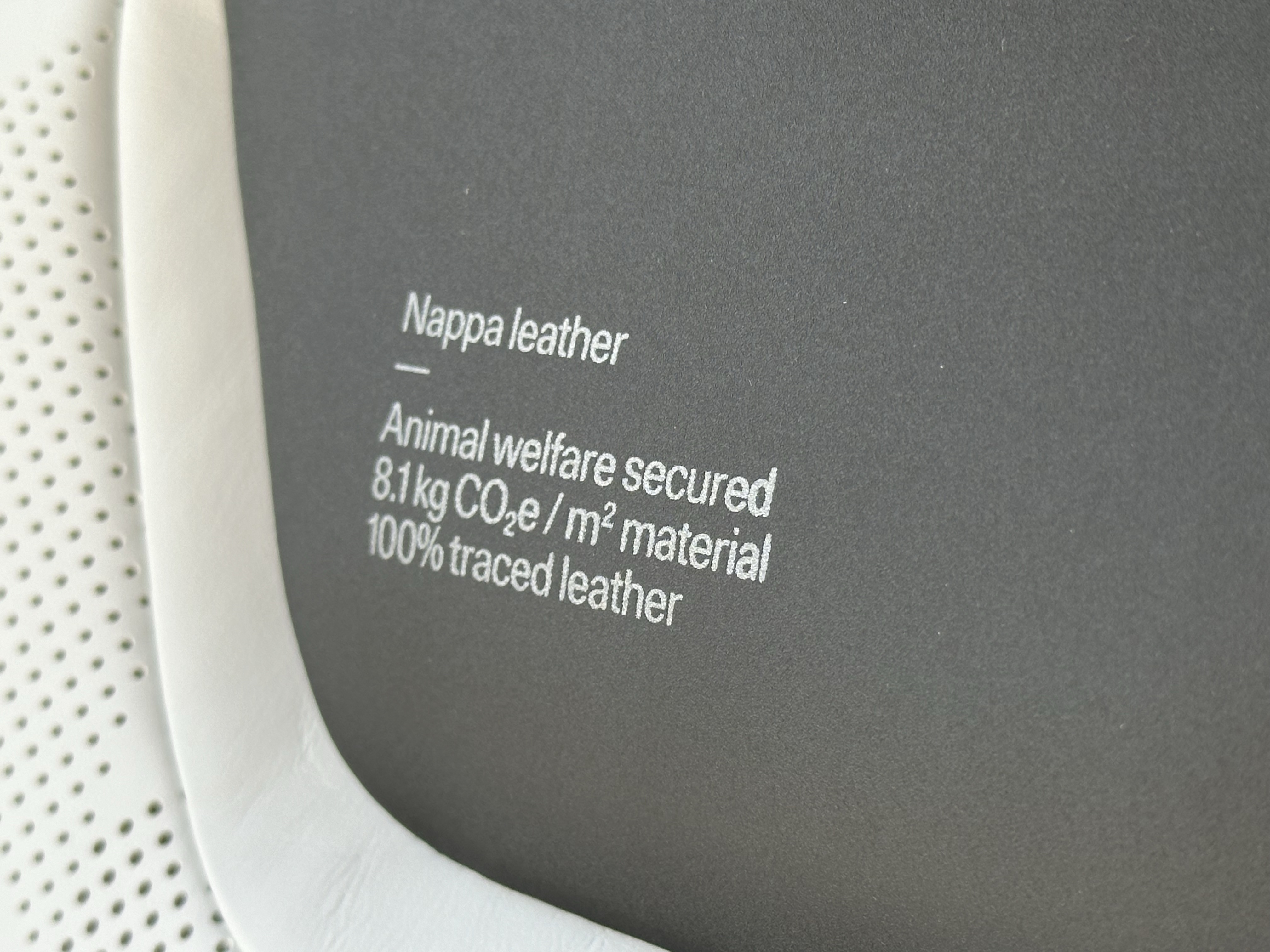 While the 3 definitely has a theme of “less is more” interior-wise, there are a few little things worth noting, some may say “quirks and features”, that I feel should be pointed out. The first is the seatbelts. Every buckle is engraved with “Since 1959”, as an homage to Volvo being the first manufacturer to apply the ubiquitous 3-point harness on all of their cars. The second is this little label on the front seat headrests, showing the sustainability rate of the leather sources for the car. Yes, it might be slightly pandering but it’s sort of cool nonetheless. The third and final thing worth noting, Volvo buyers know what’s coming: The clip! Yes, there is a clip on the driver’s side corner of the windshield perfect for pens, parking tickets, or whatever else you might need to have shown in your window. Some recent Volvo and Polestar models have had this clip omitted, but I’m glad to see it make a return in some newer models. My grandmother is very, very happy.