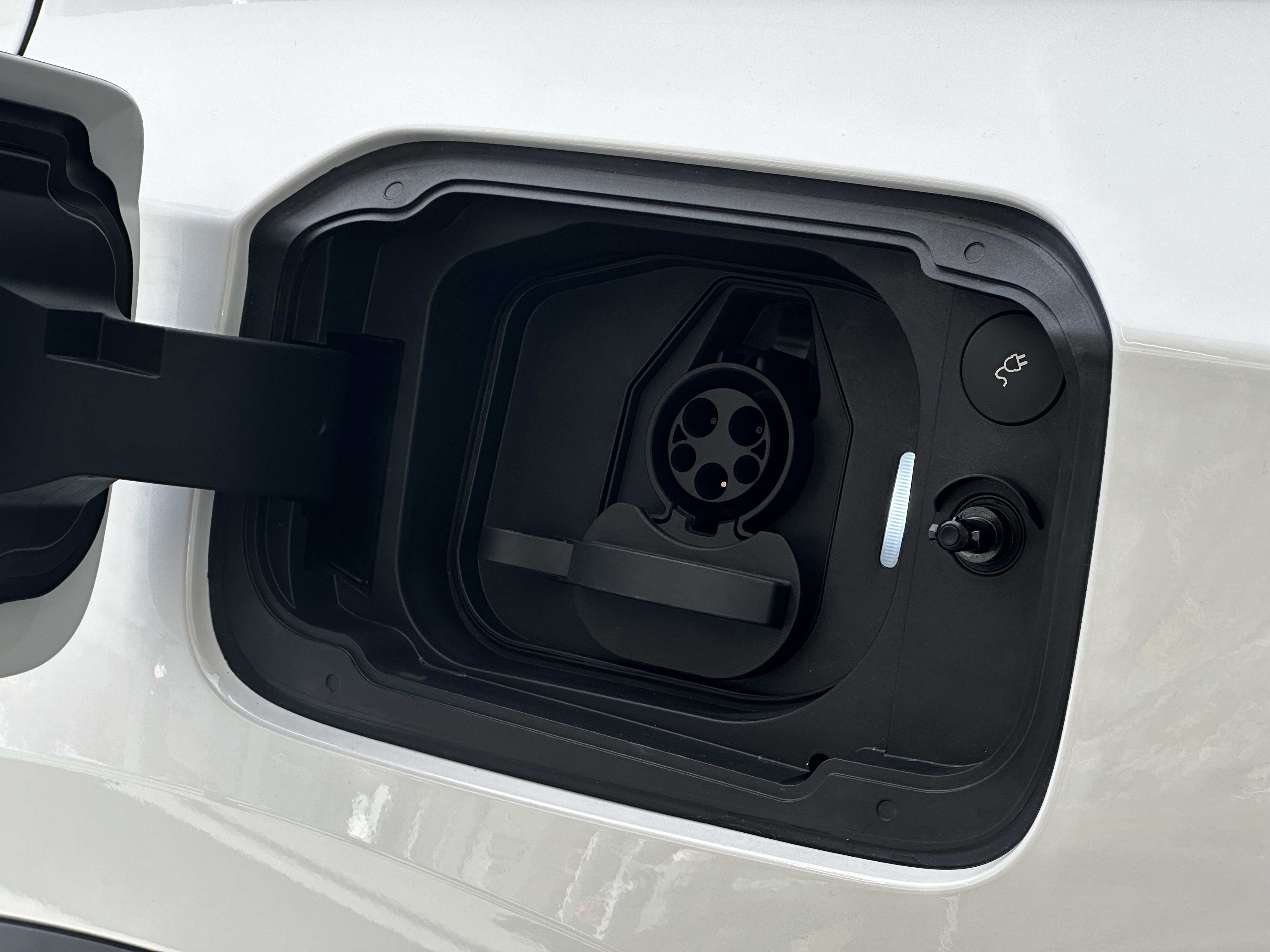 Did you know that electric cars are required by law to have an obscene amount of technology? I mean, they don’t, but it feels like it, right? Anyway, there is plenty of “stuff” in this car despite its rather plain-looking interior. For one, you get an unbelievably good Bowers & Wilkins Soundsystem which, despite what Mercedes fanboys say, is the best sound system you can get in a car. Period, full stop. You also get plenty of USB-C ports for both the front and rear passengers, a wireless phone charger I forgot to take a photo of (Top tier automotive journalism right here, folks), wireless Apple CarPlay and Android Auto, heated front and rear seats, and a heated steering wheel for the Launch Edition only.